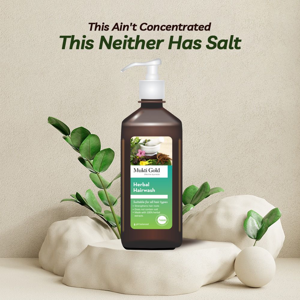 • Axiom MuktiGold Herbal Hairwash contains Rare Herbs : Amla, Harar, Coconut, Shikakai, Nagarmotha, Brahmi, Neem, Bawachi, Amba, Arjun, Bhringraj, Rose, Jamul chal, Bahera, Belpatra