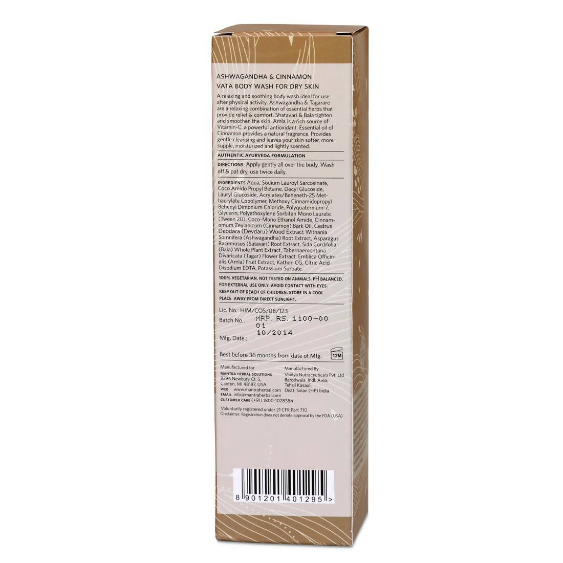 Mantra Herbal Ashwagandha and Cinnamon Vata Body Wash For Dry Skin