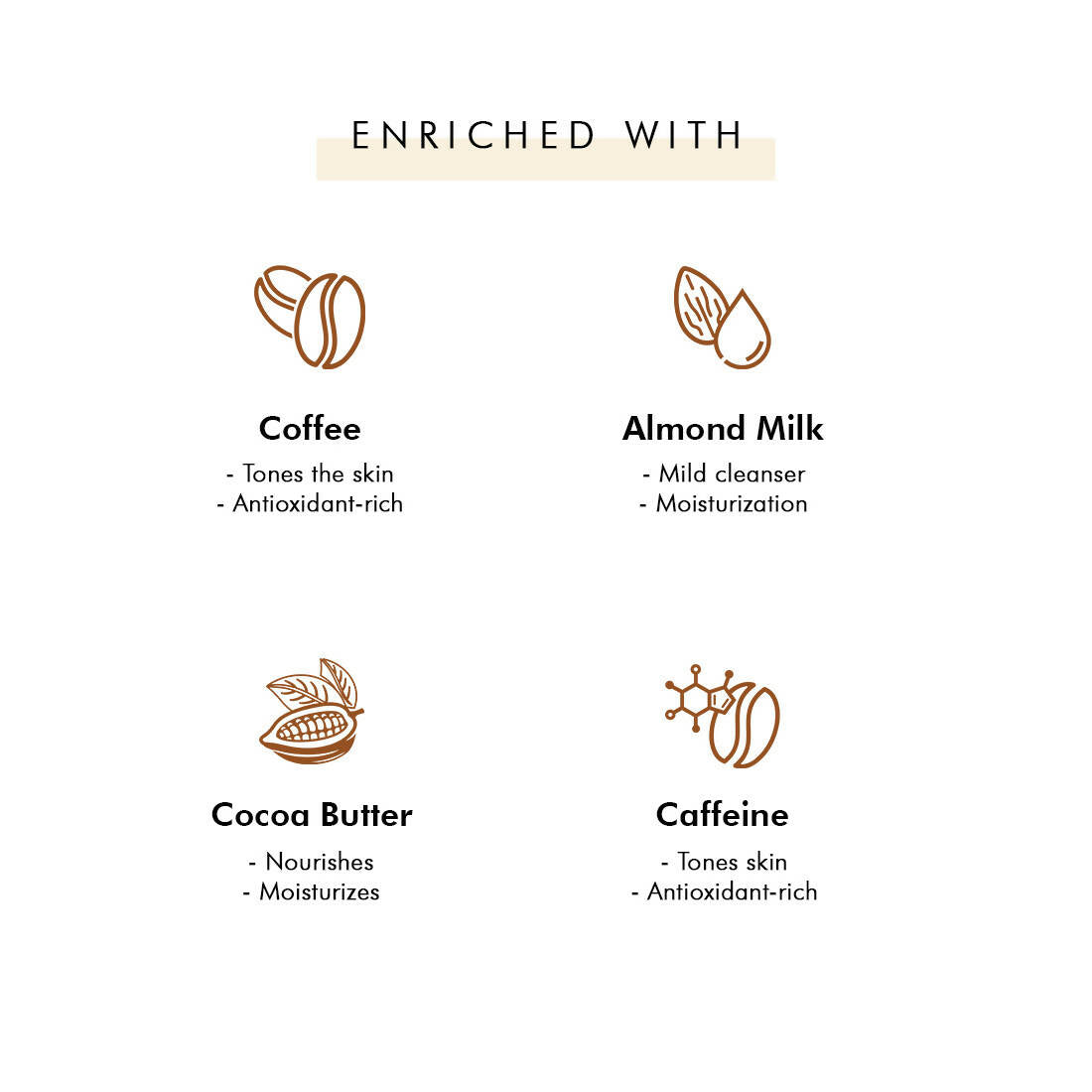 • Caffeine: Antioxidant-rich, helps support healthy-looking skin