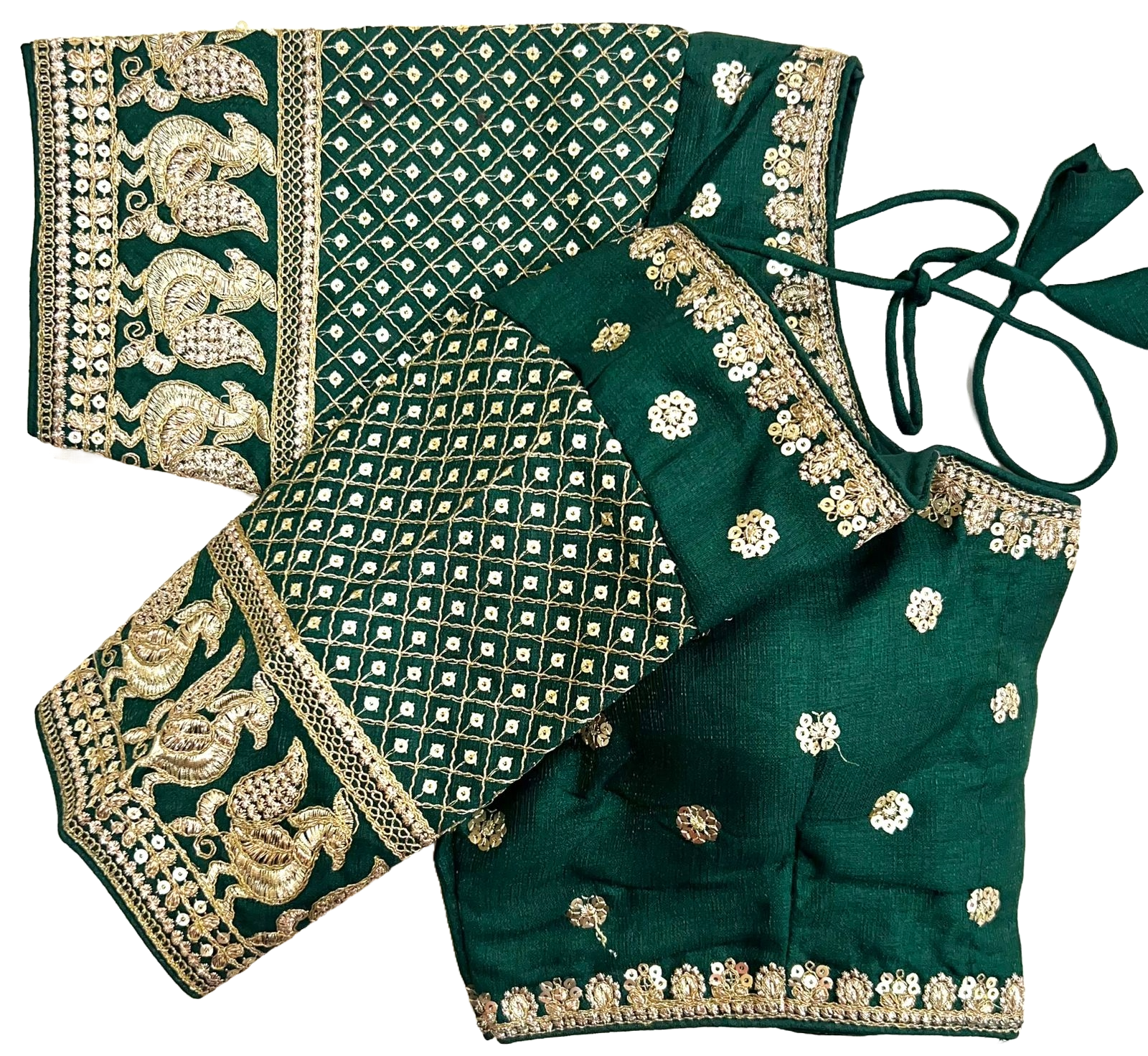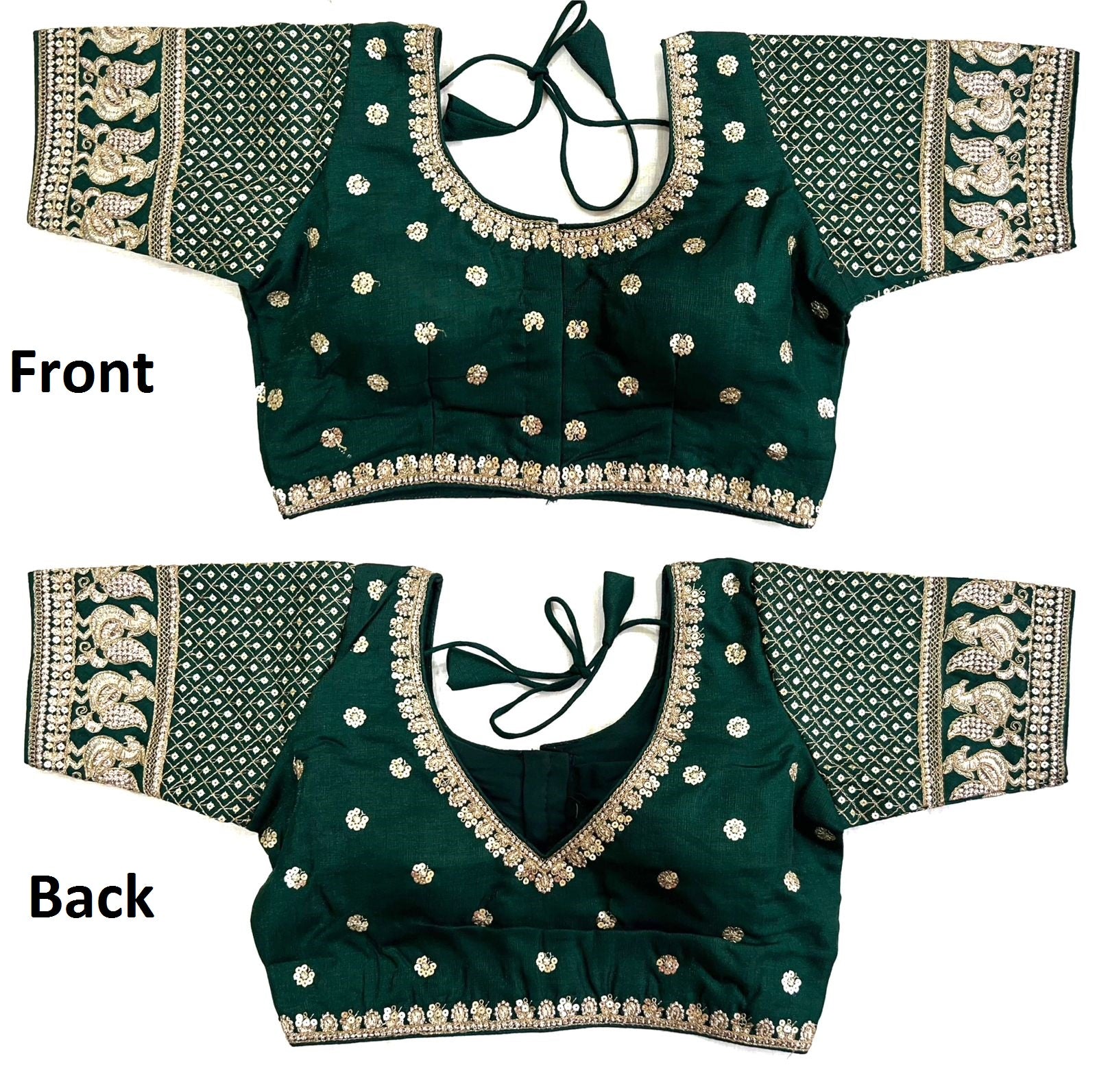 Green Silk Blouse,Embroidery Work Blouse For Women