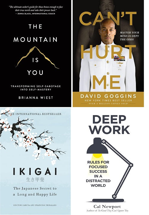 Combo Set of 4 Books ( Mountain is you + Can't Hurt Me+Ikigai+Deep Work) PPRBCK