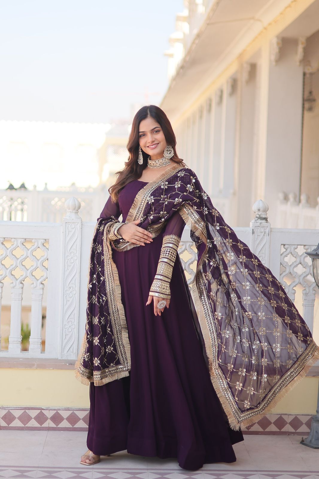 Faux Blooming & Embroidery Multi-Sequence Work Gown With Dupatta