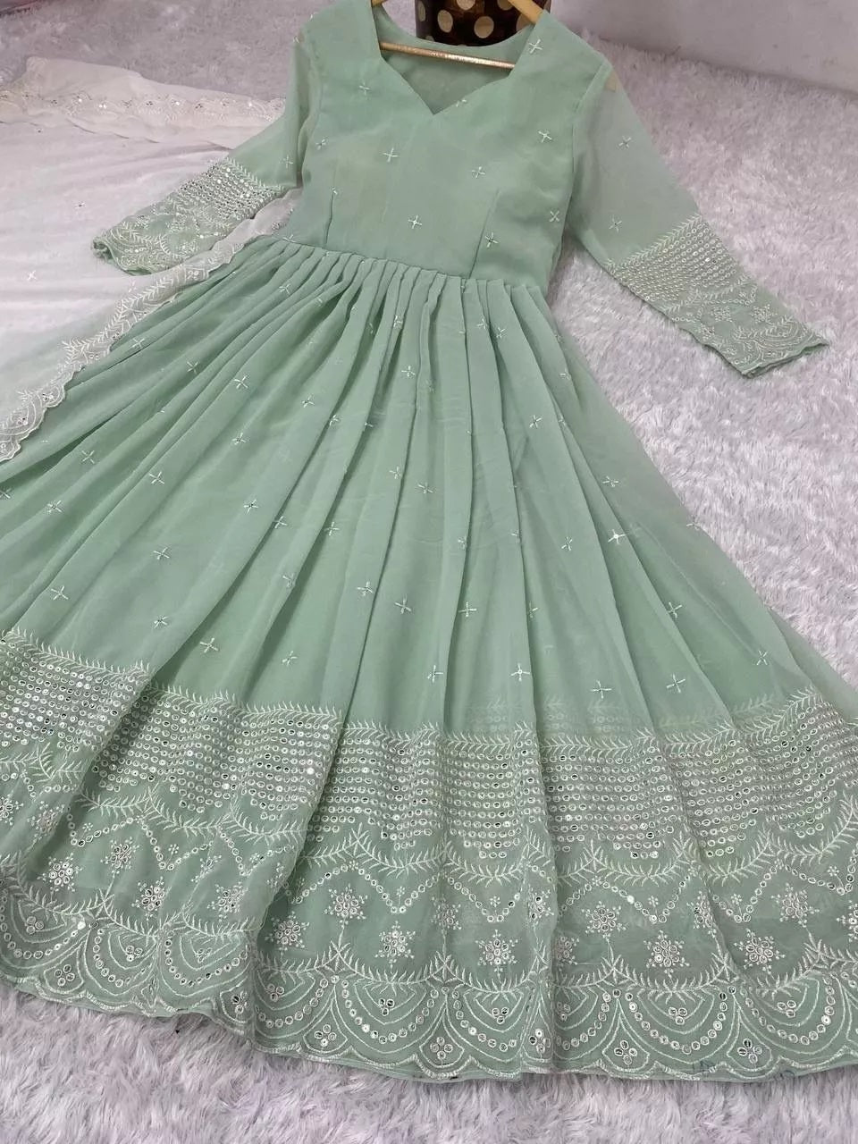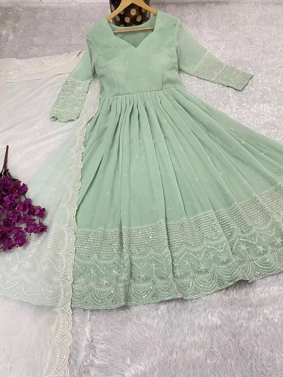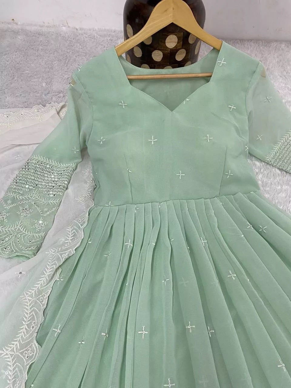 Faux Georgette Sequence With Embroidery Work Gown Dresses With Dupatta