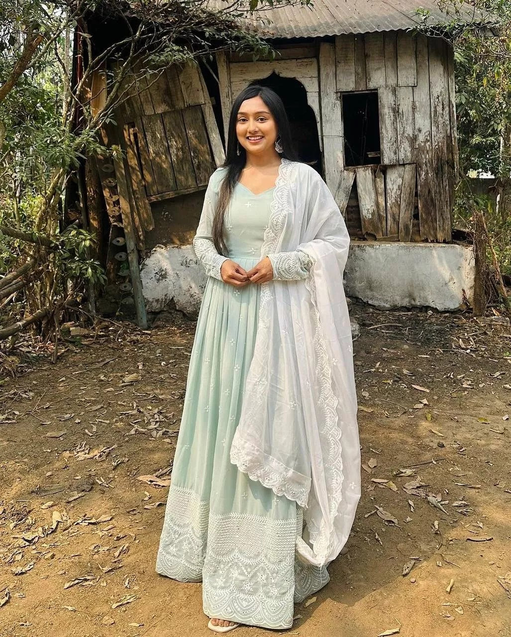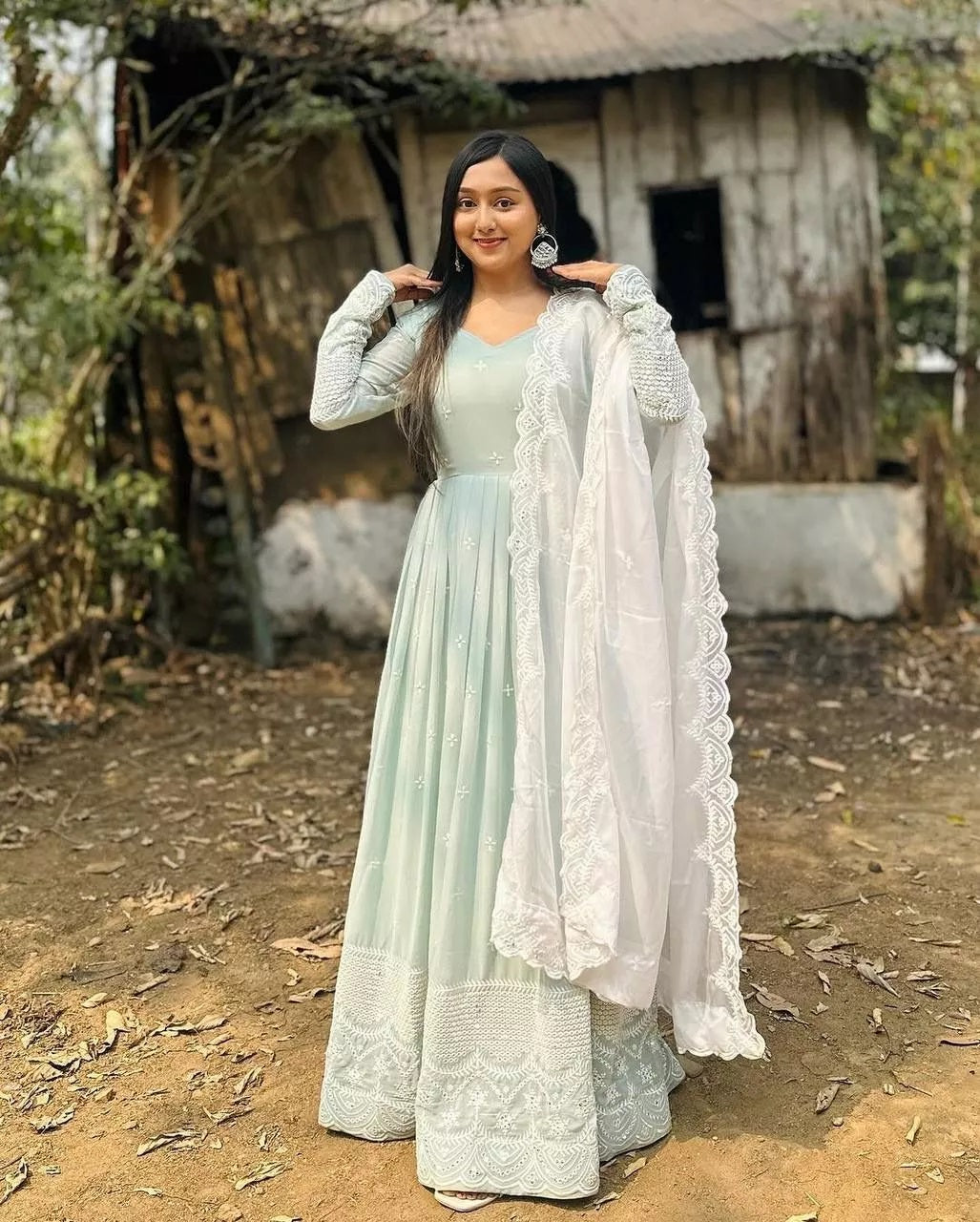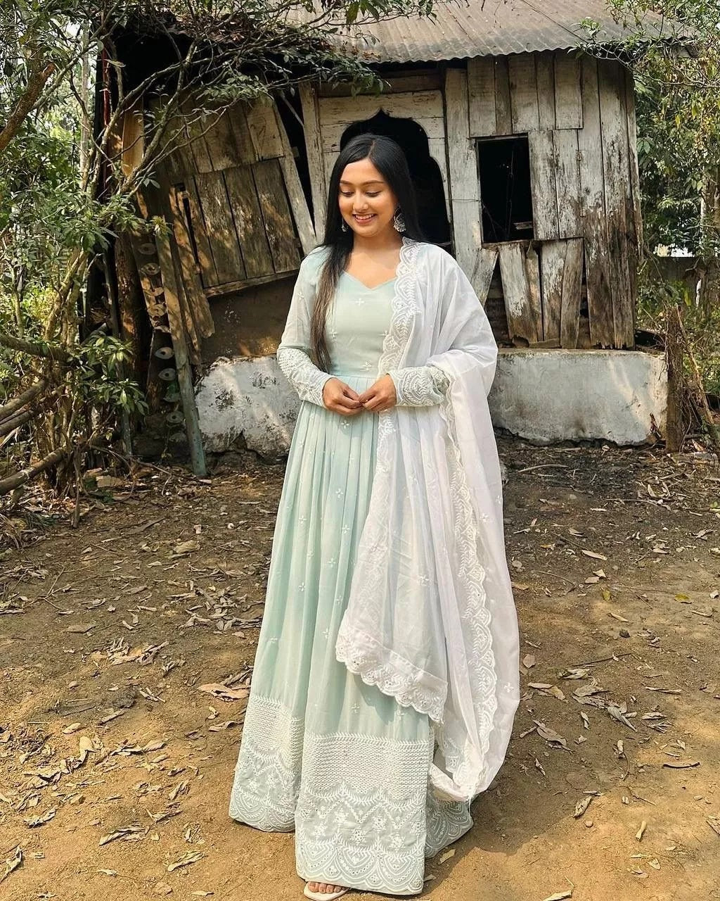 Faux Georgette Sequence With Embroidery Work Gown Dresses With Dupatta