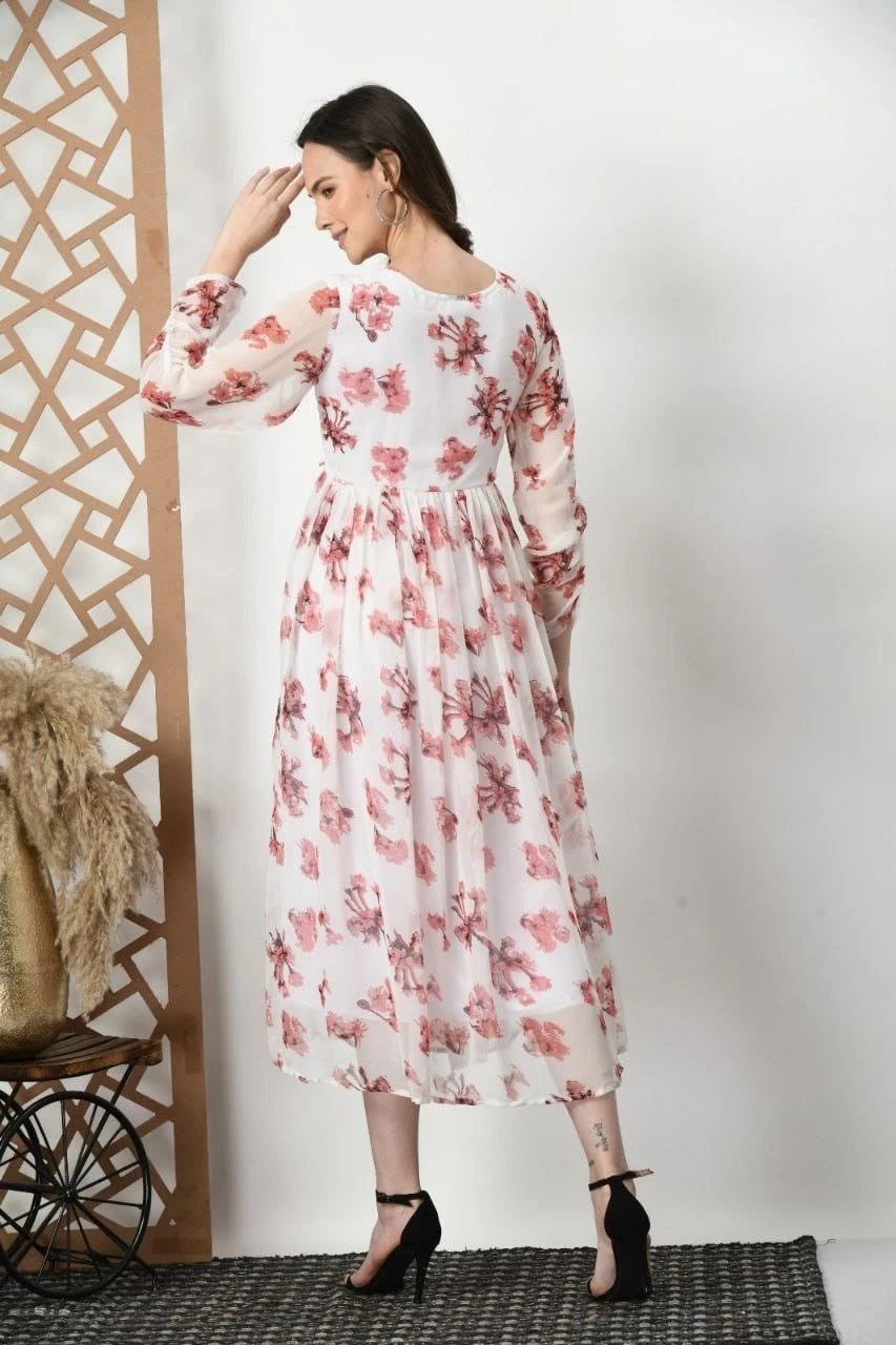 White Beautiful Printed Flared Dress Classic And Stylish Top With Dupatta 12-VC