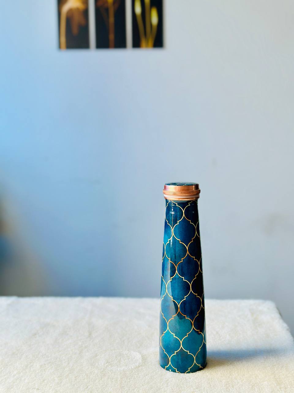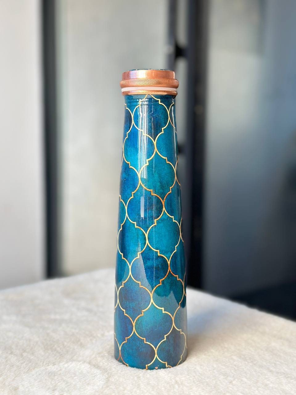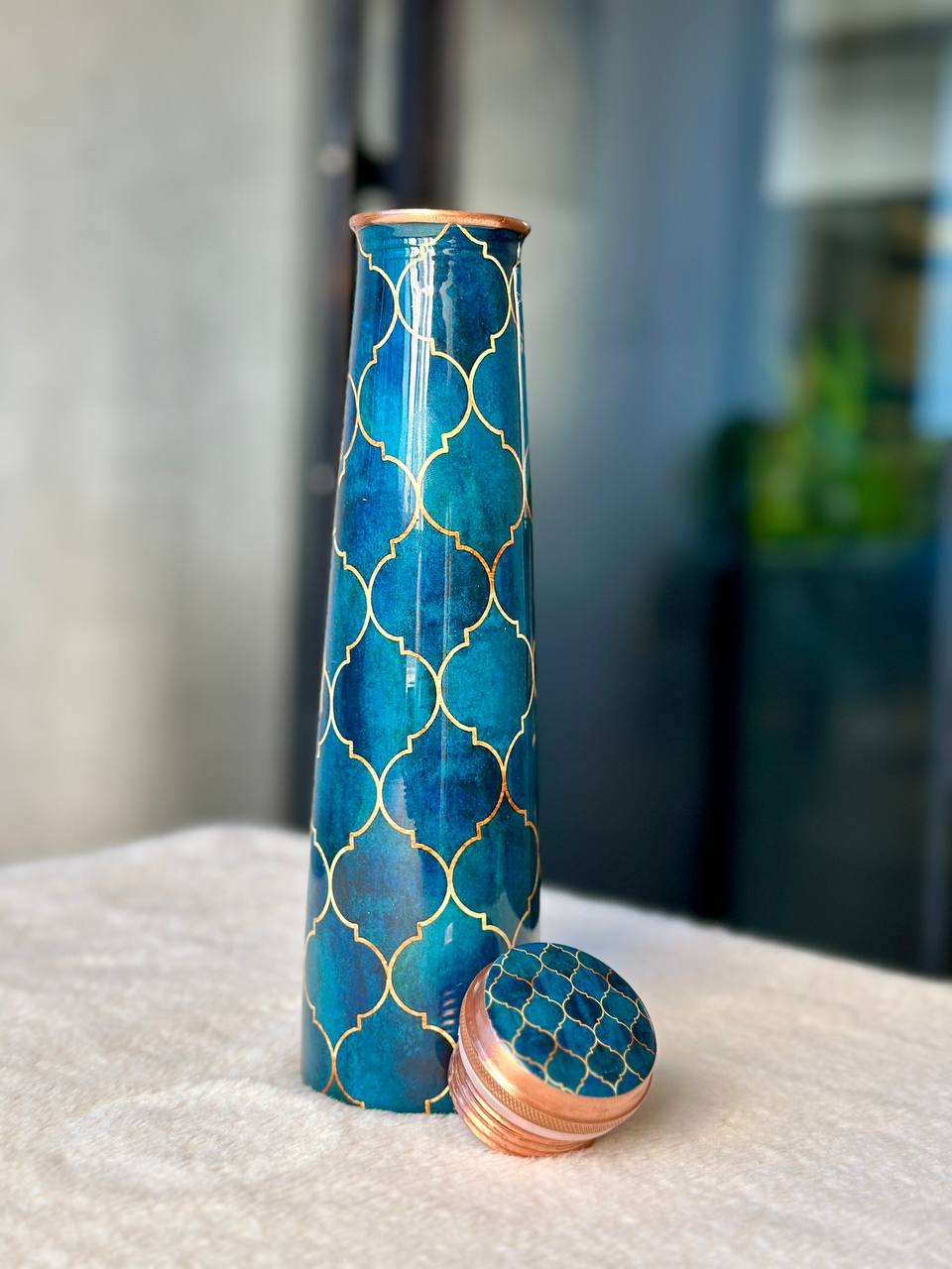 Meenakari Print Tower Copper Water Bottle – 1L | Leak-Proof, Ayurvedic-Inspired Design