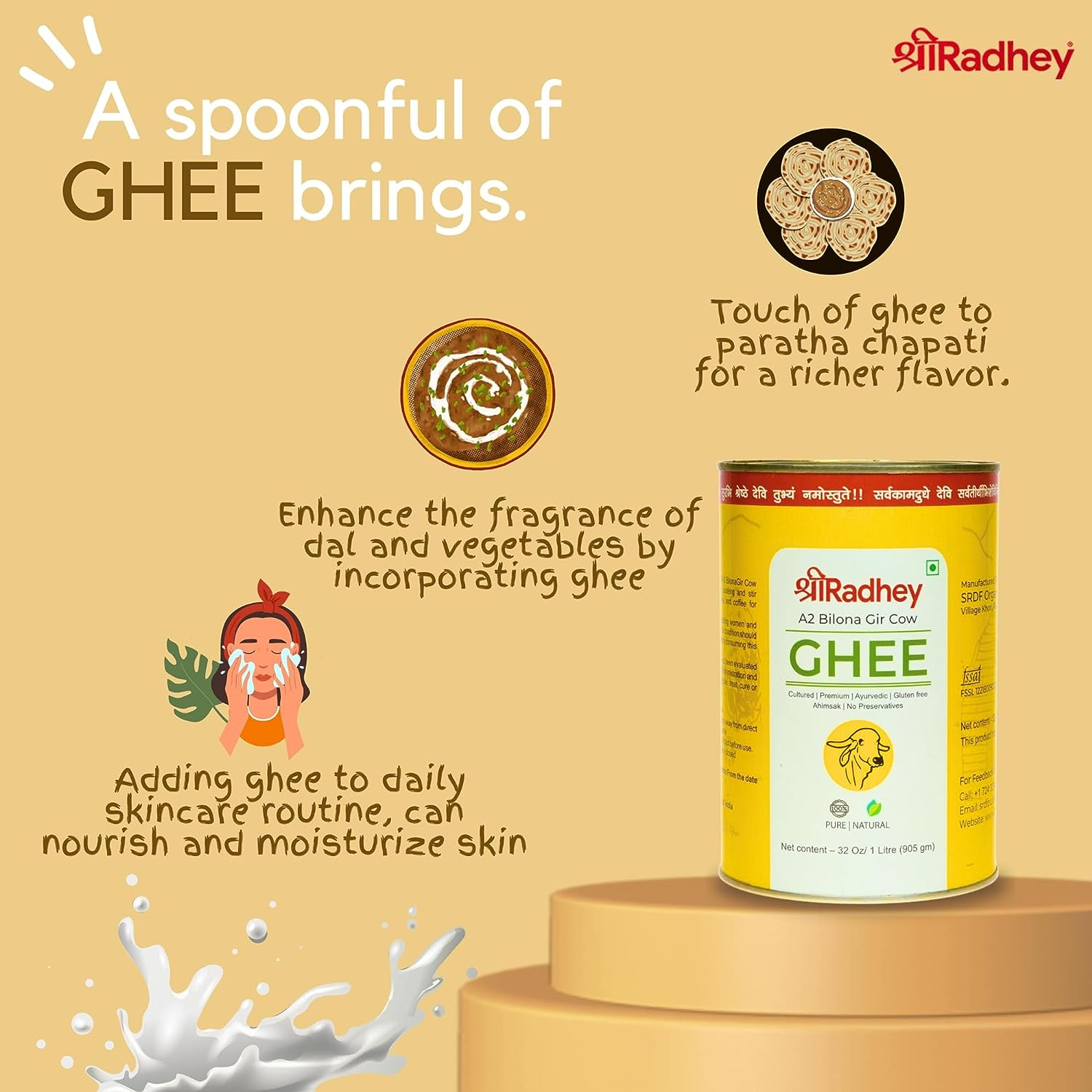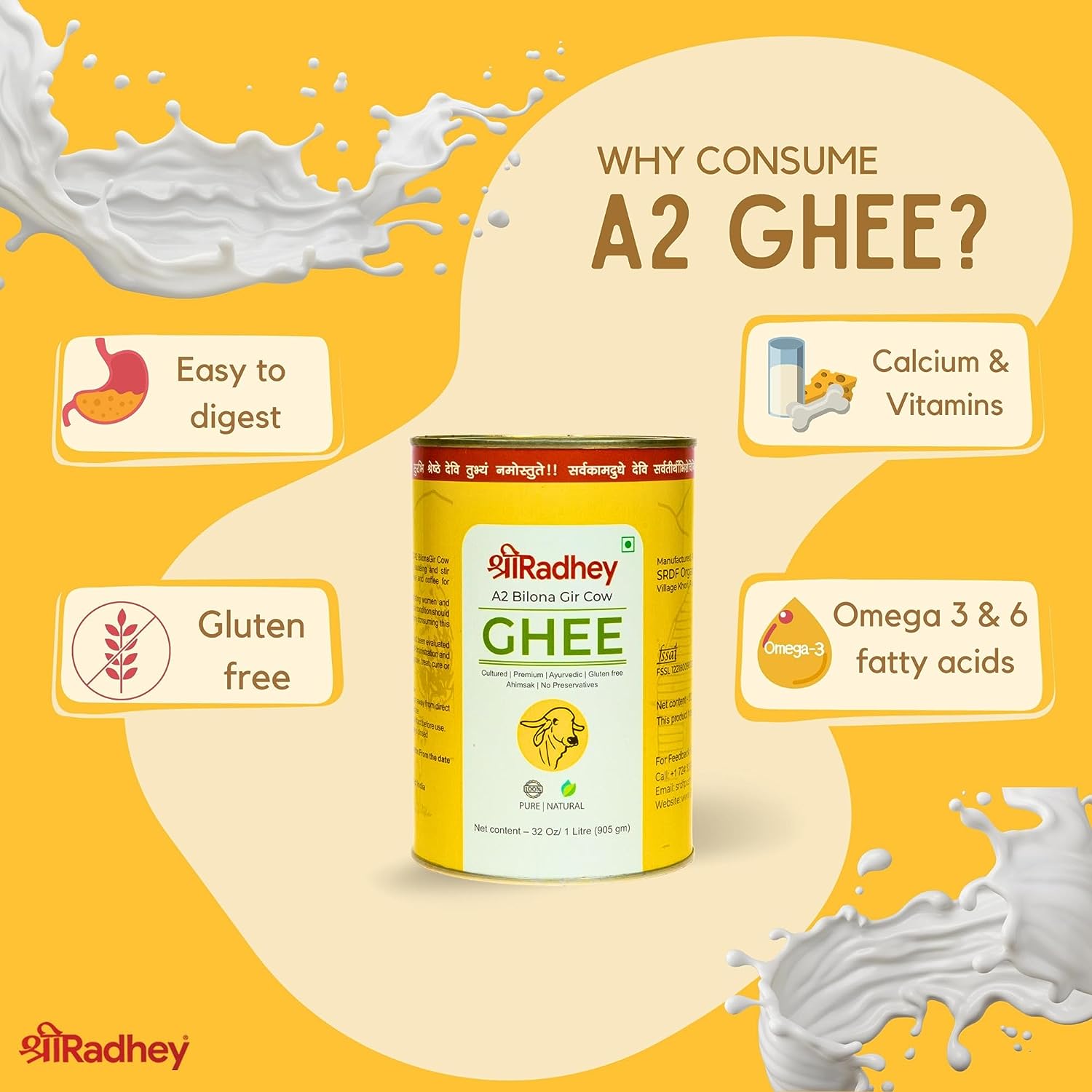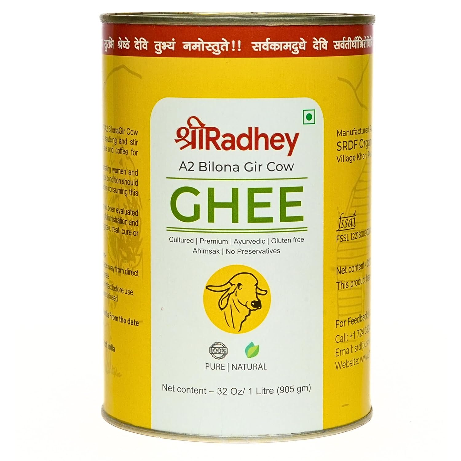 Shreeradhey A2 Bilona Gir Cow Ghee - 1 L