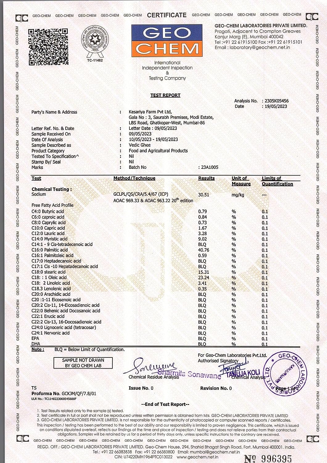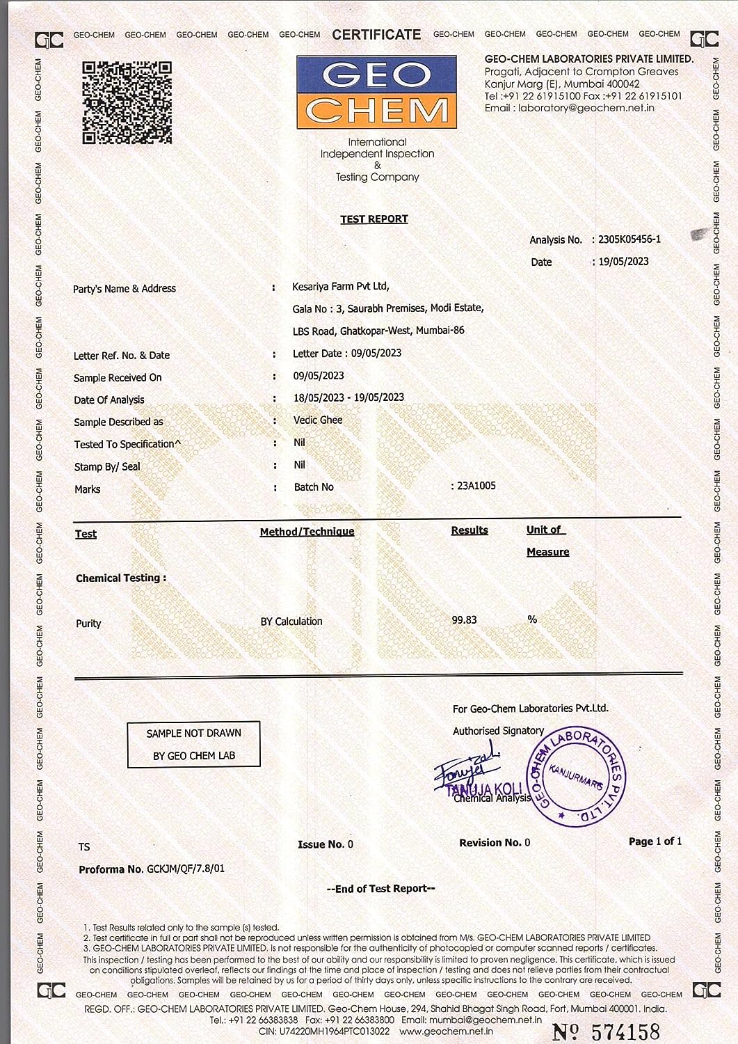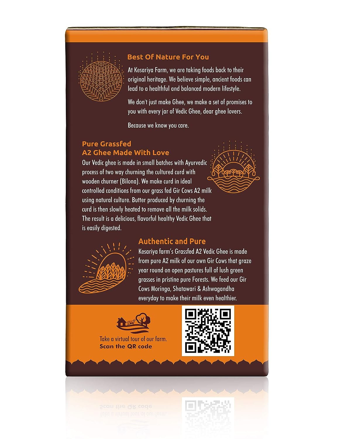 • Vedic Ghee A2 Gir Cow's Ghee is full of nutritive fatty acids, an ideal fat source for the Indian vegetarian diet. Blessed with balanced omega 3 to omega 6 ratio and Conjugated linoleic acid, Its regular consumption enhances physical and mental strength for a balanced and active lifestyle. It keeps the body healthy and increases its potency of the body.