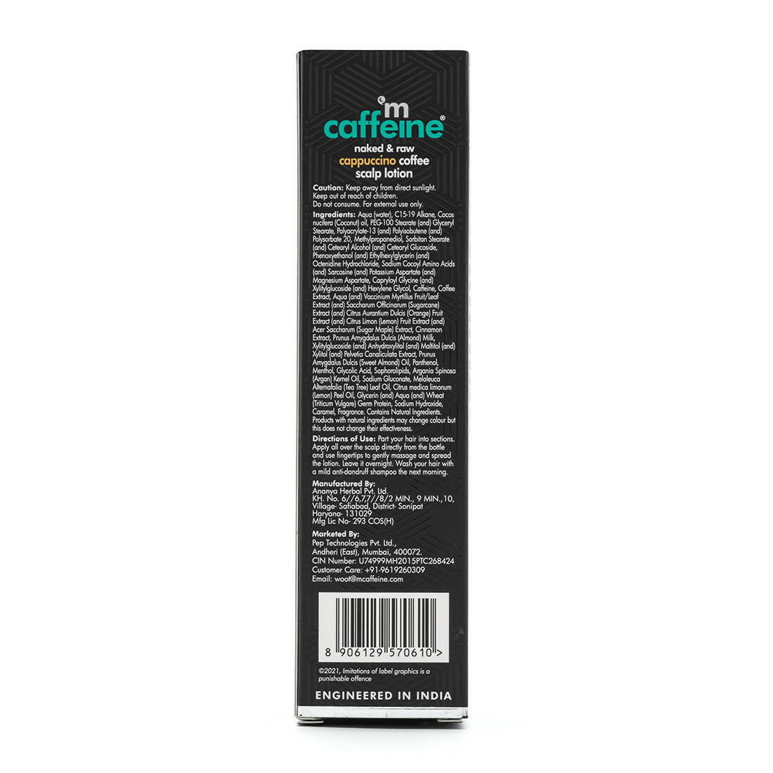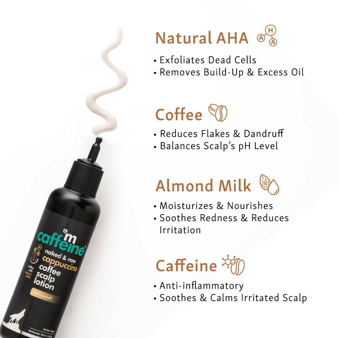 • mCaffeine Naked & Raw Cappuccino Coffee Scalp Lotion Anti-Dandruff is a complete and long-lasting solution for all your dandruff problems.