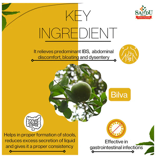 The Sandu Bilagyl powder contains Aegle marmelos (Bael fruit) and Sugar as the main ingredients. Each teaspoonful of Bilagyl powder contains 2.3 gm of Bael fruit.