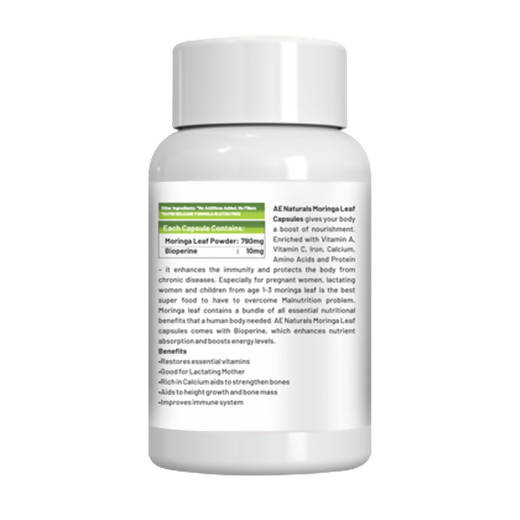 • AE Naturals Moringa capsules are dietary supplements made from the dried leaves of the Moringa Oleifera tree.