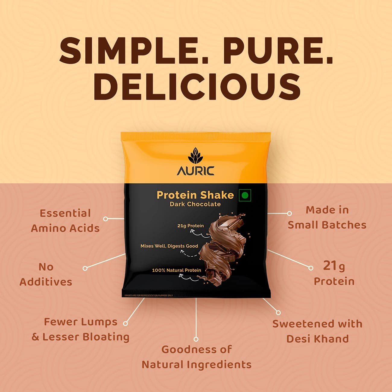 Auric Vegan Protein Powder for Men & Women (Dark Chocolate Flavor) 8 Sachet-21g