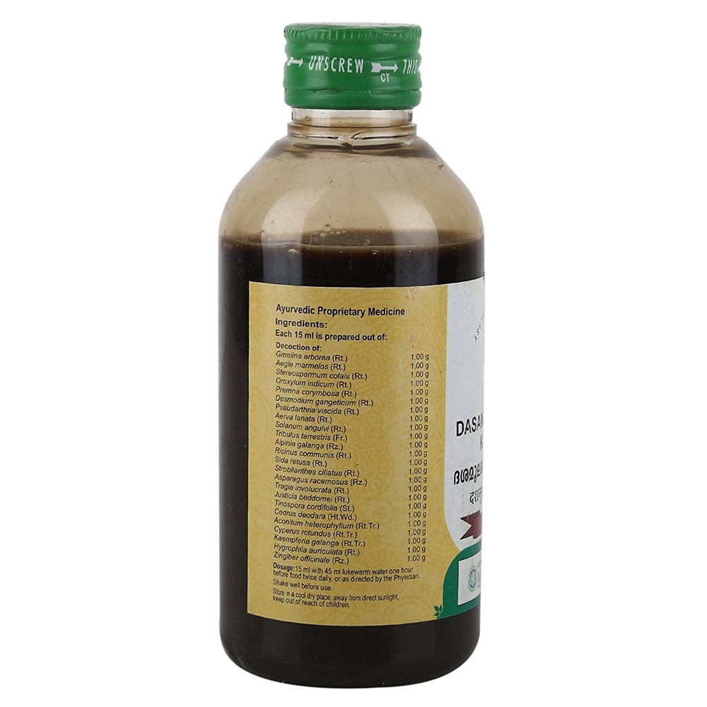 Vaidyaratnam Dasamoolarasnadi Kashayam is an organic supplement. This preservative-free supplement is made with