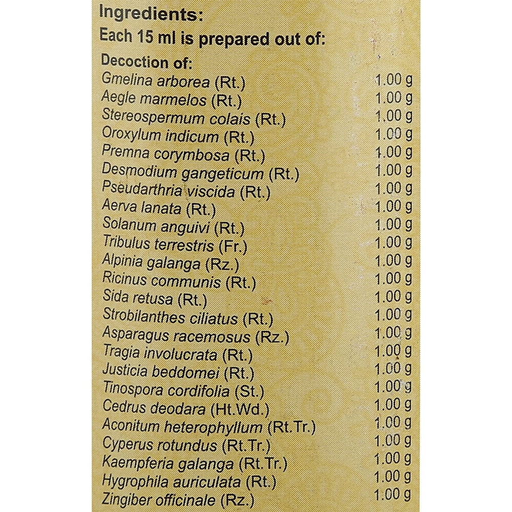 Vaidyaratnam Dasamoolarasnadi Kashayam is known for its anti-inflammatory properties. This herbal potent is may helpful for