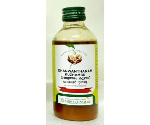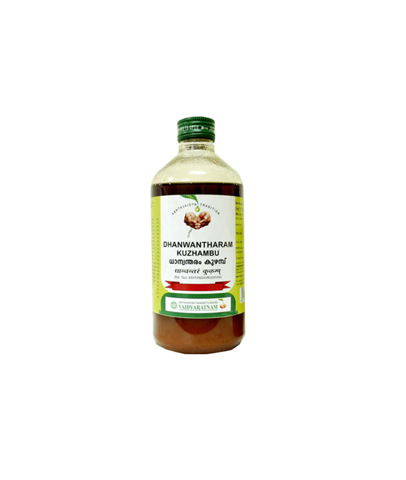 • Vaidyaratnam Dhanwantharam Kuzhambu is a very effective ayurvedic medicine in paralytic disorders and also for women in the pregnancy stage and postnatal care.