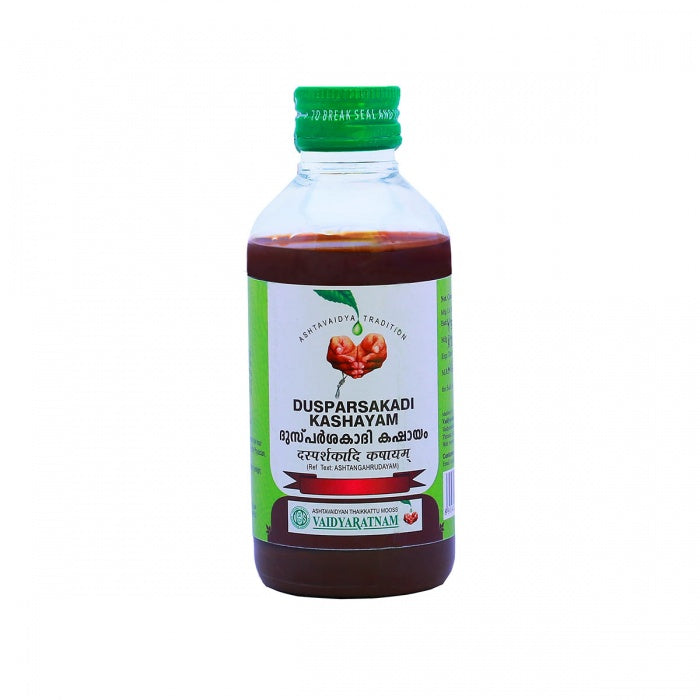 Vaidyaratnam Dusparsakadi Kashayam is an all-natural herbal tonic. It is made with