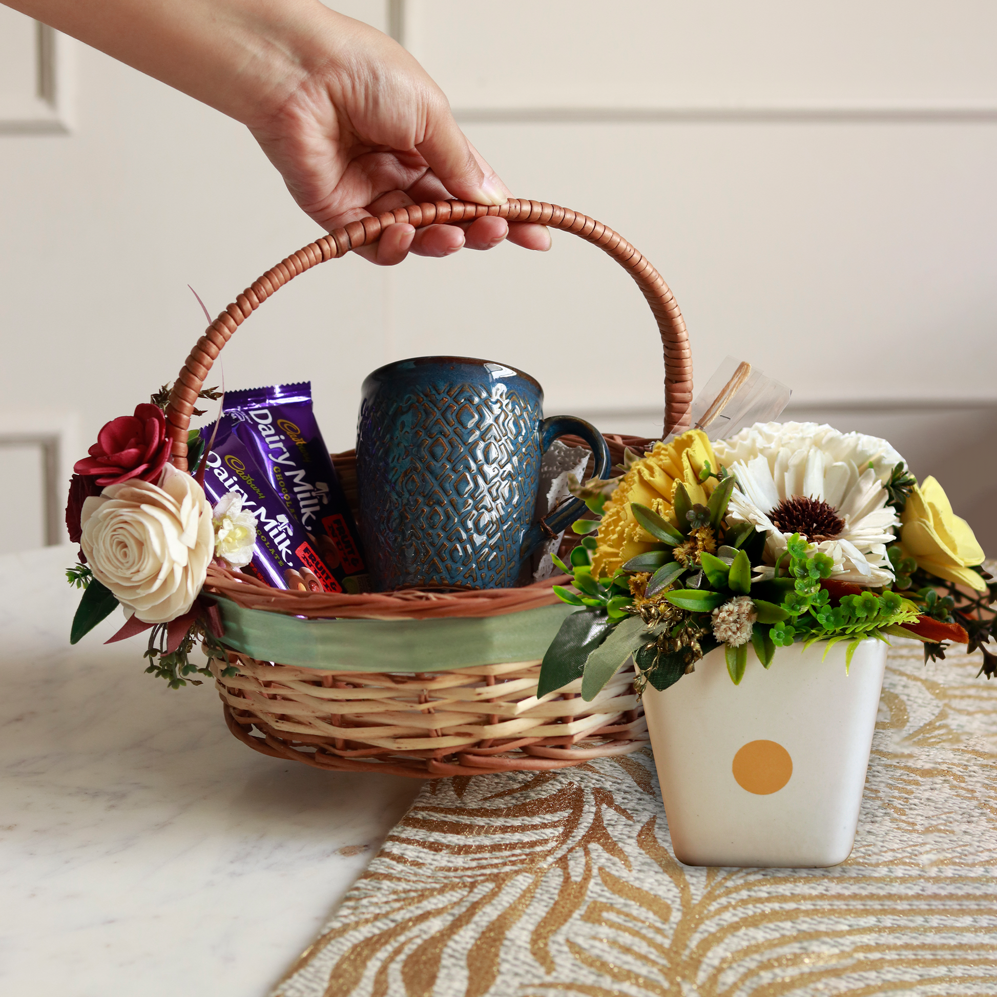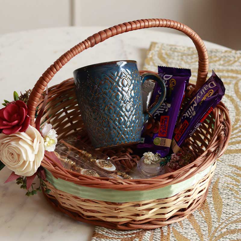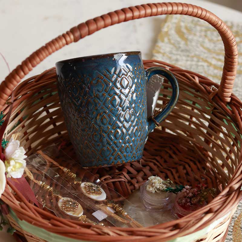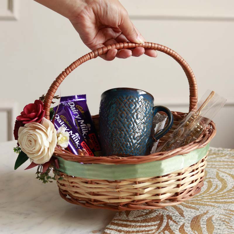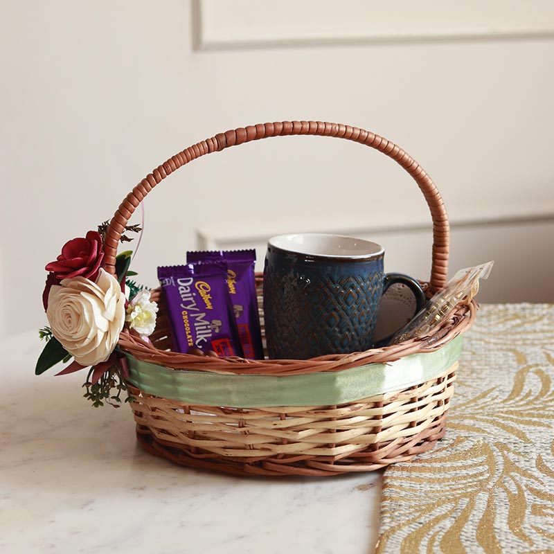Material- Cane Basket & Ceramic Mug