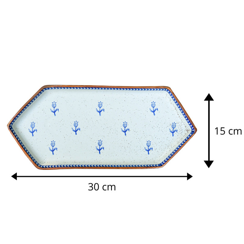 With its eye-catching floral motif, this handcrafted ceramic platter is ideal for serving starters, snacks, and appetisers in style at your next dinner party. The hexagonal shape gives it added practicality.
