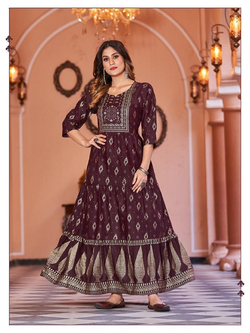 Fancy Long 3 Layer Flair Slub Rayon Gown Collection 13-SR16