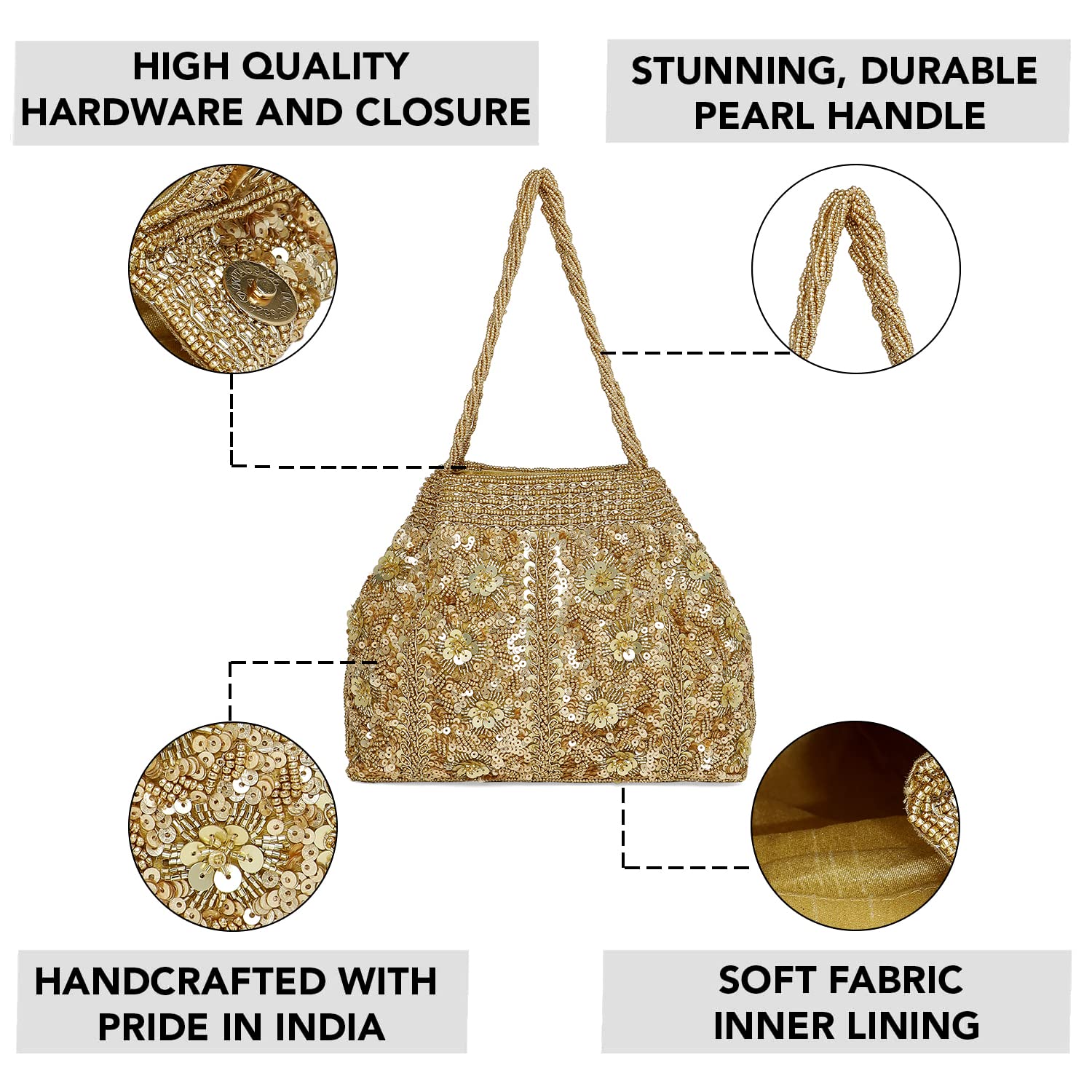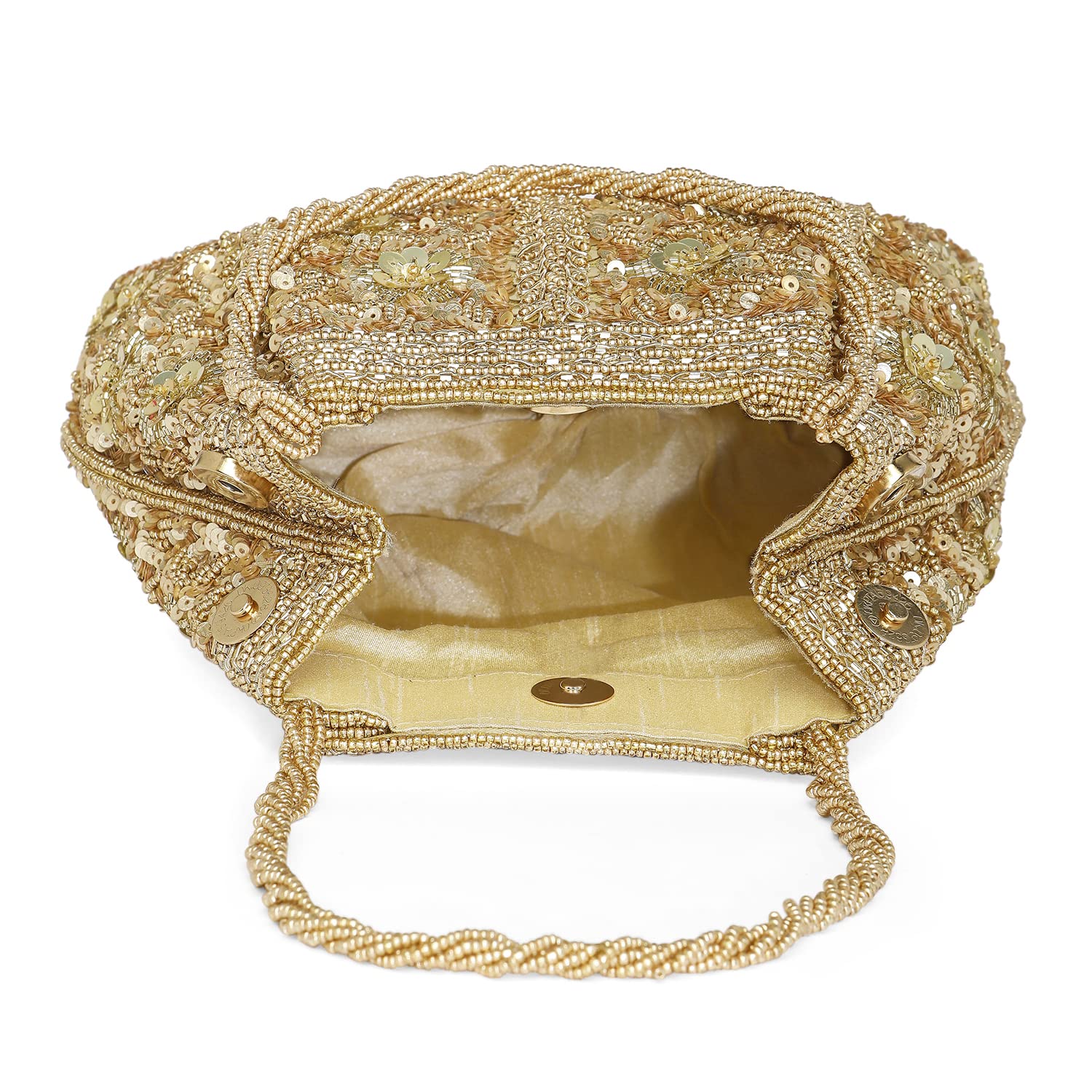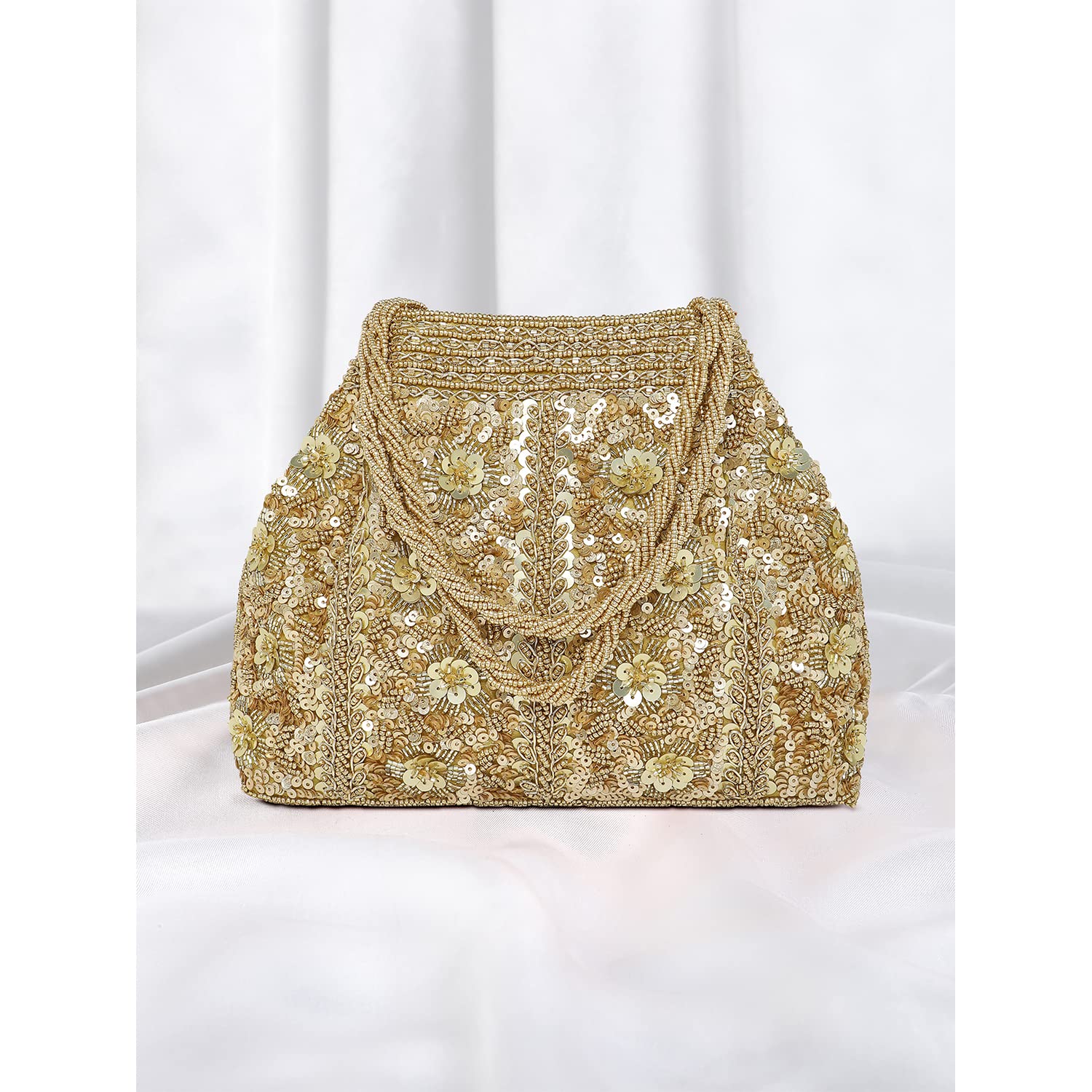 Gold Potli Bag for Women Evening Wristlet Handbag Stylish Bridal Purse