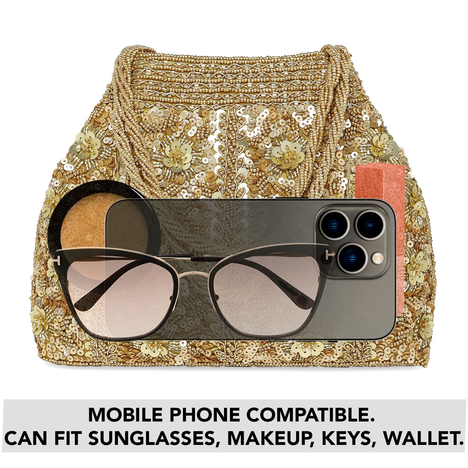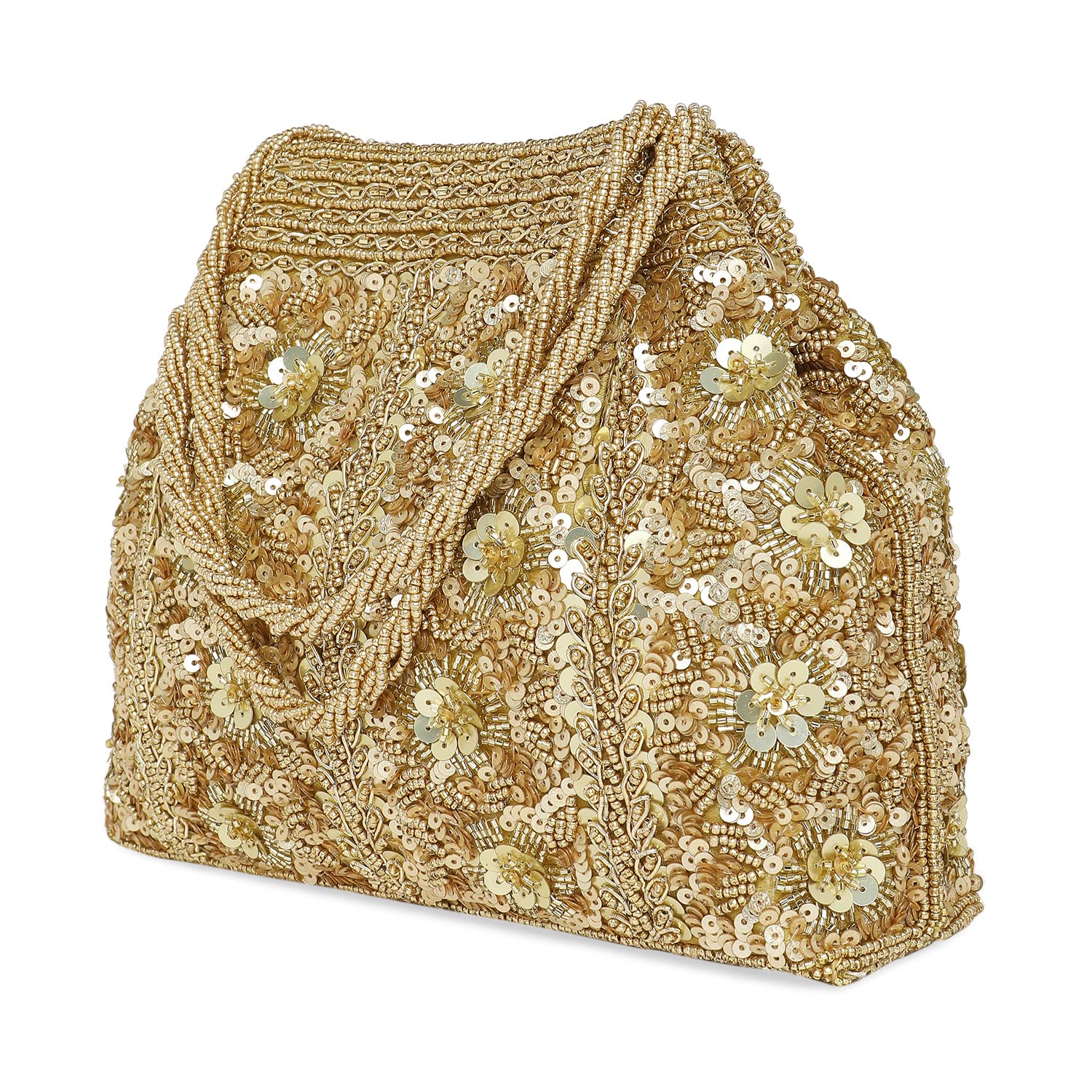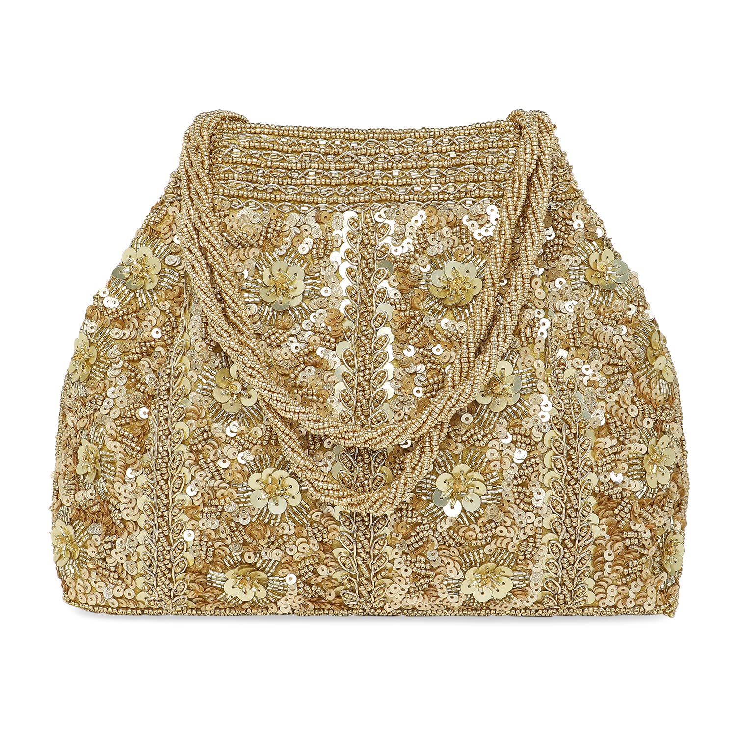 Gold Potli Bag for Women Evening Wristlet Handbag Stylish Bridal Purse