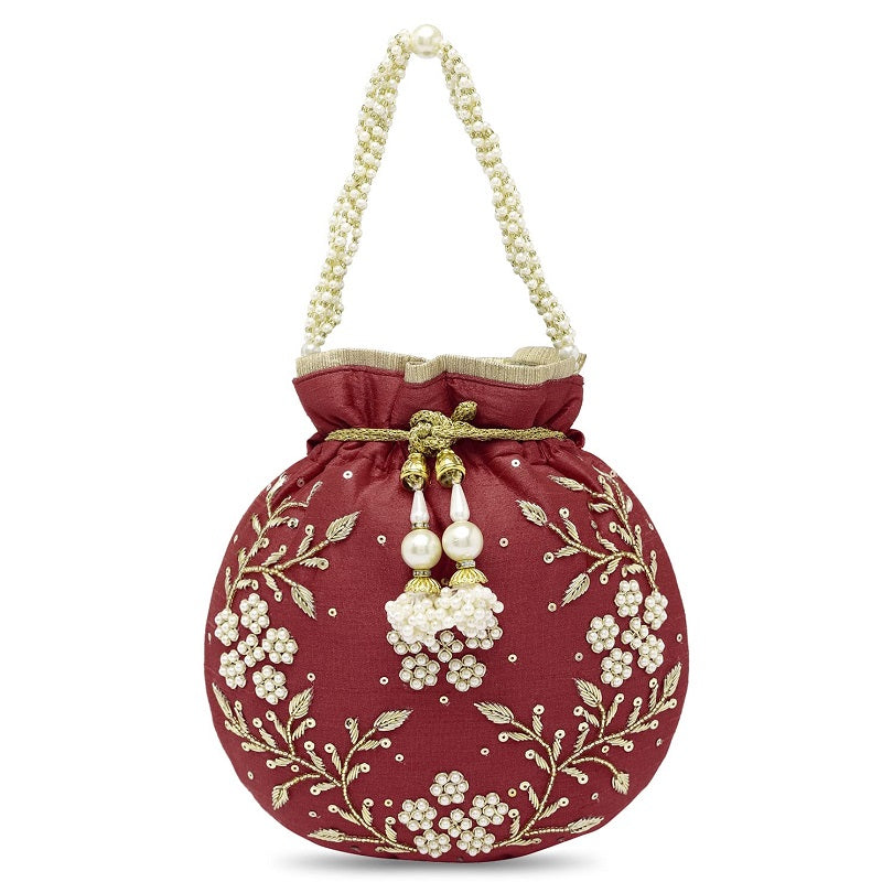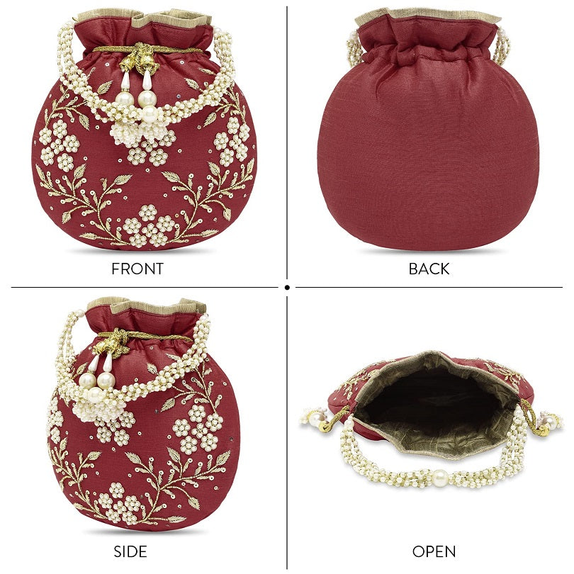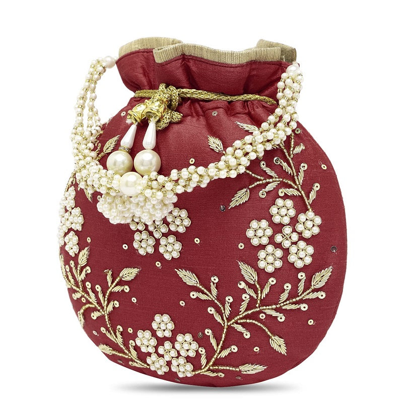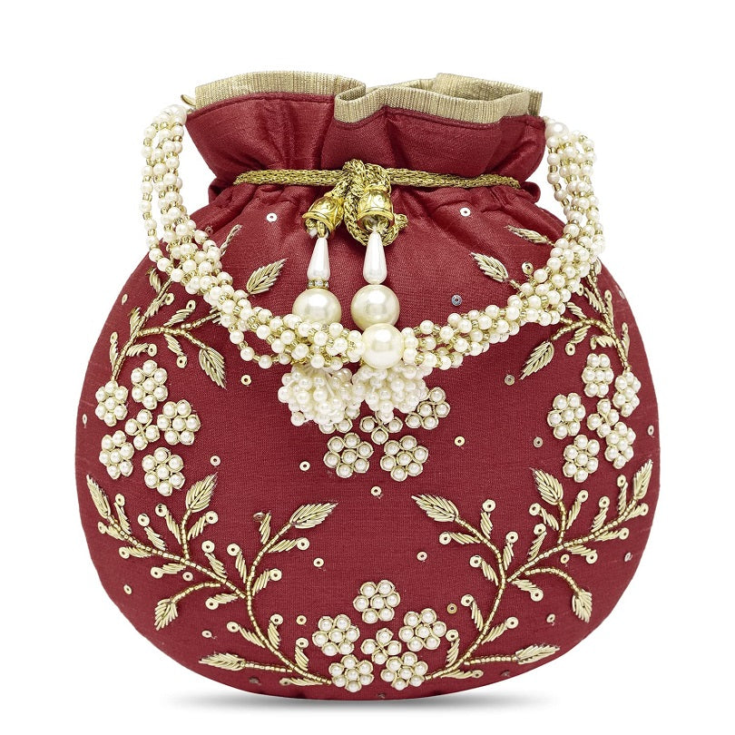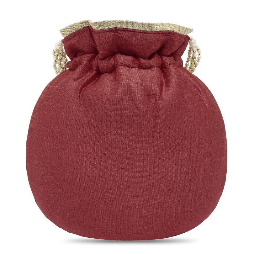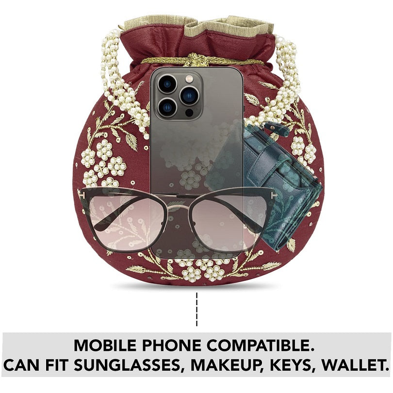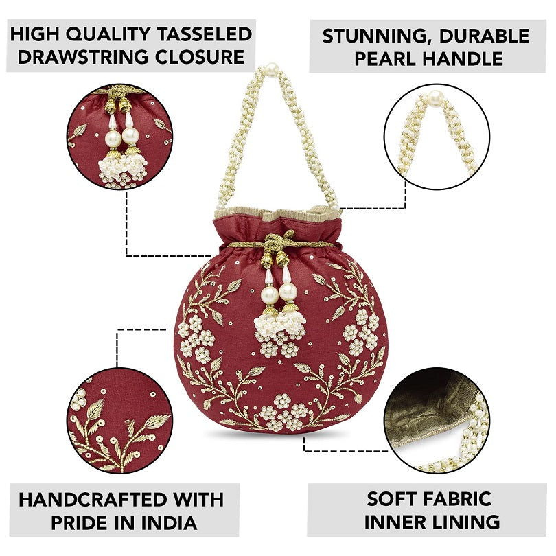 KEY FEATURES: Potli Bag Dimension: - L - 7 Inch x W - 1.5 Inch x H - 8 Inches, Weight- 160 Grams || Rani Pink Gold Potli Bags for Women Evening Bag Clutch Ethnic Bride Purse with Drawstring