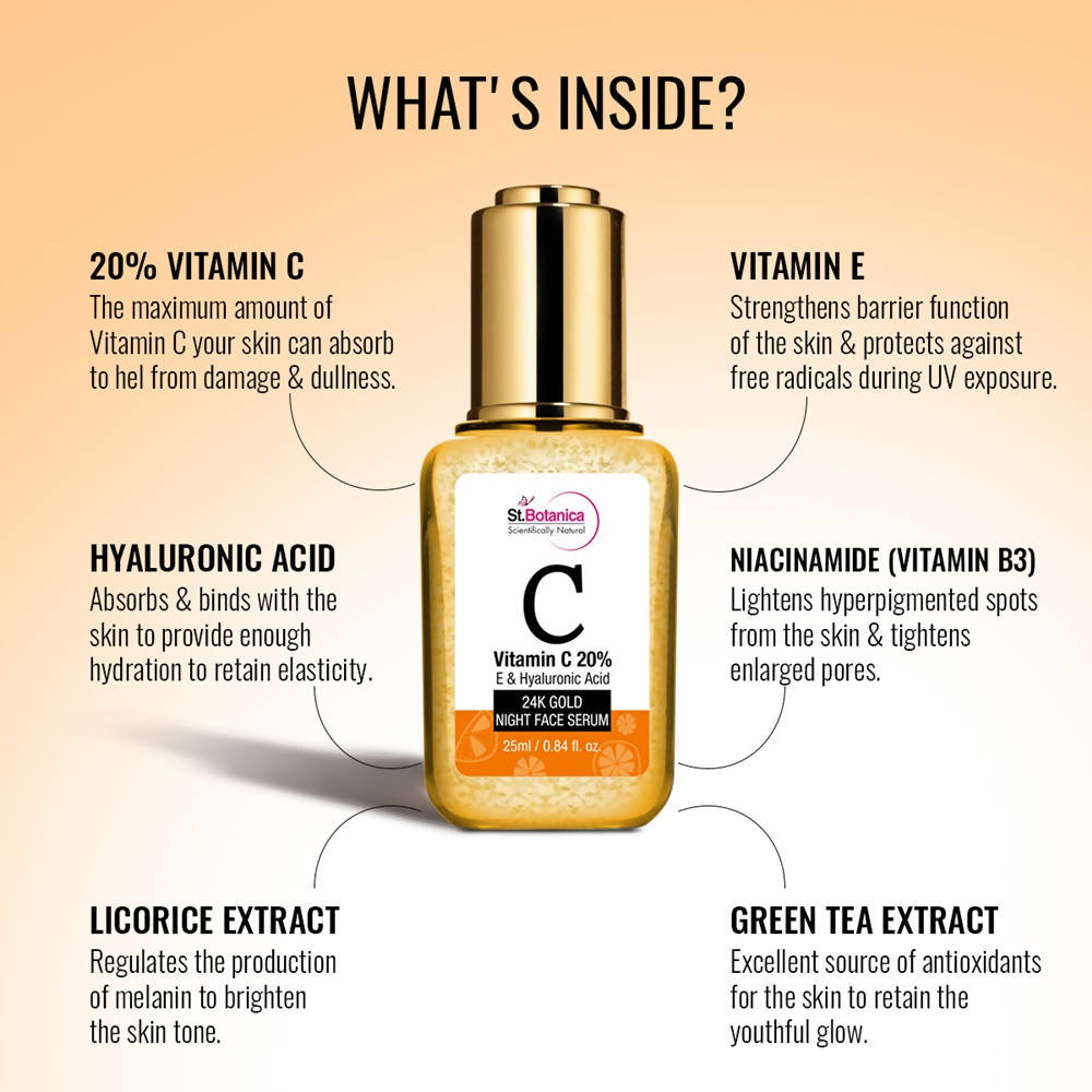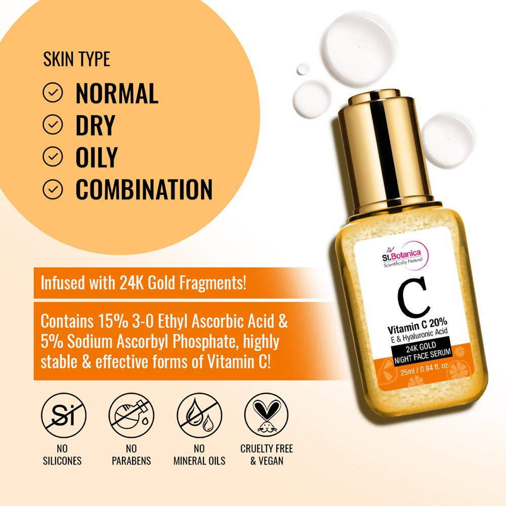 St.Botanica Vitamin C 20%, E & Hyaluronic Acid 24k Gold Night Face Serum