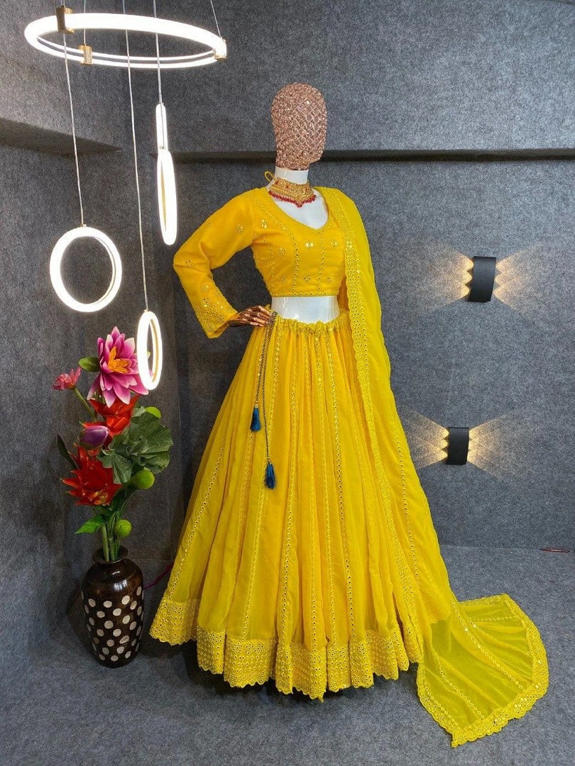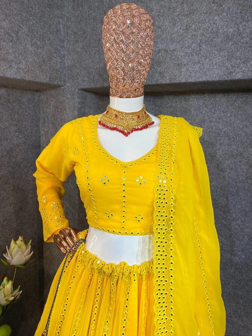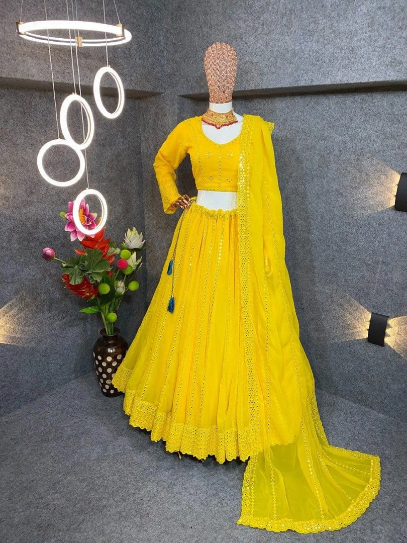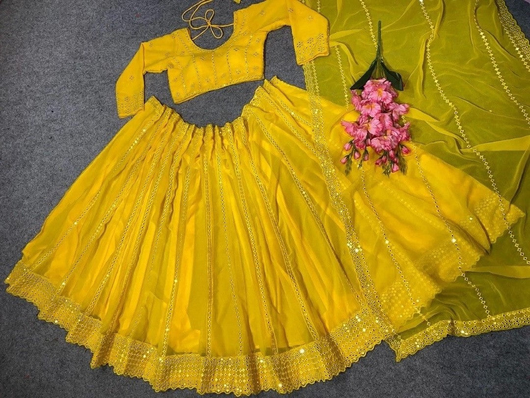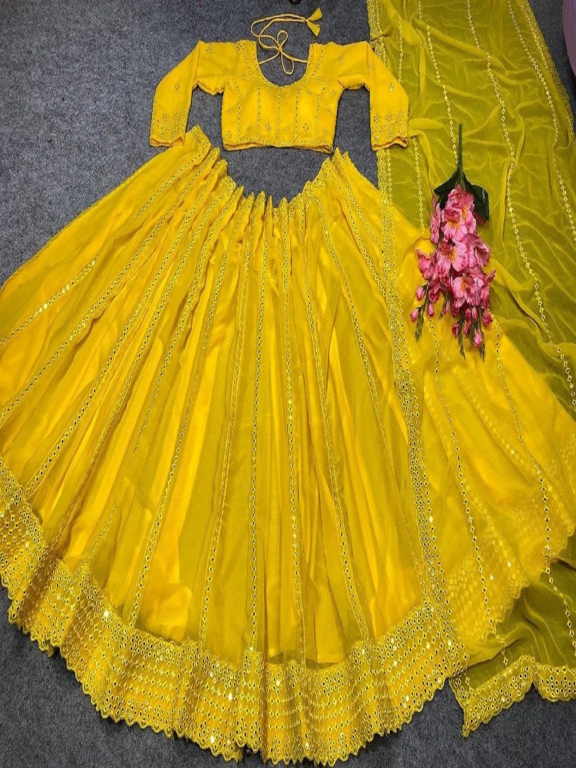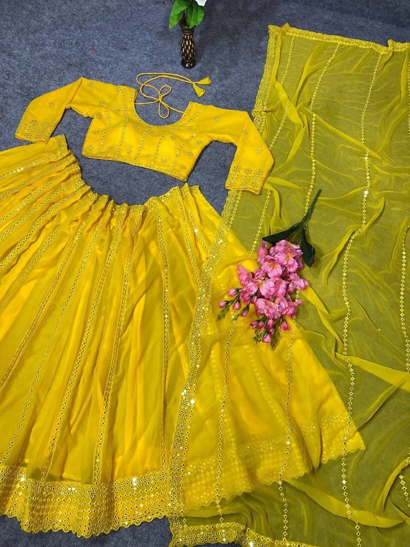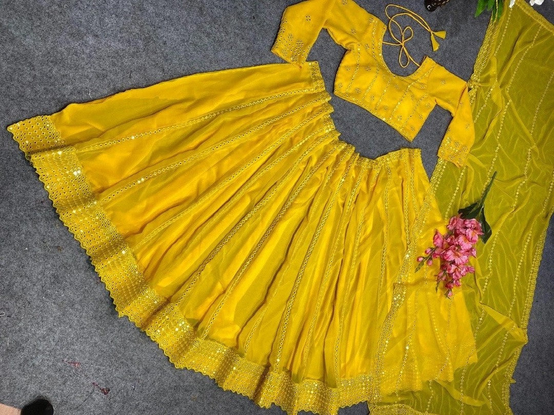 Traditional Wear Faux Georgette Lengha Choli, Bollywood Bridesmaids Lehenga 15-DC2