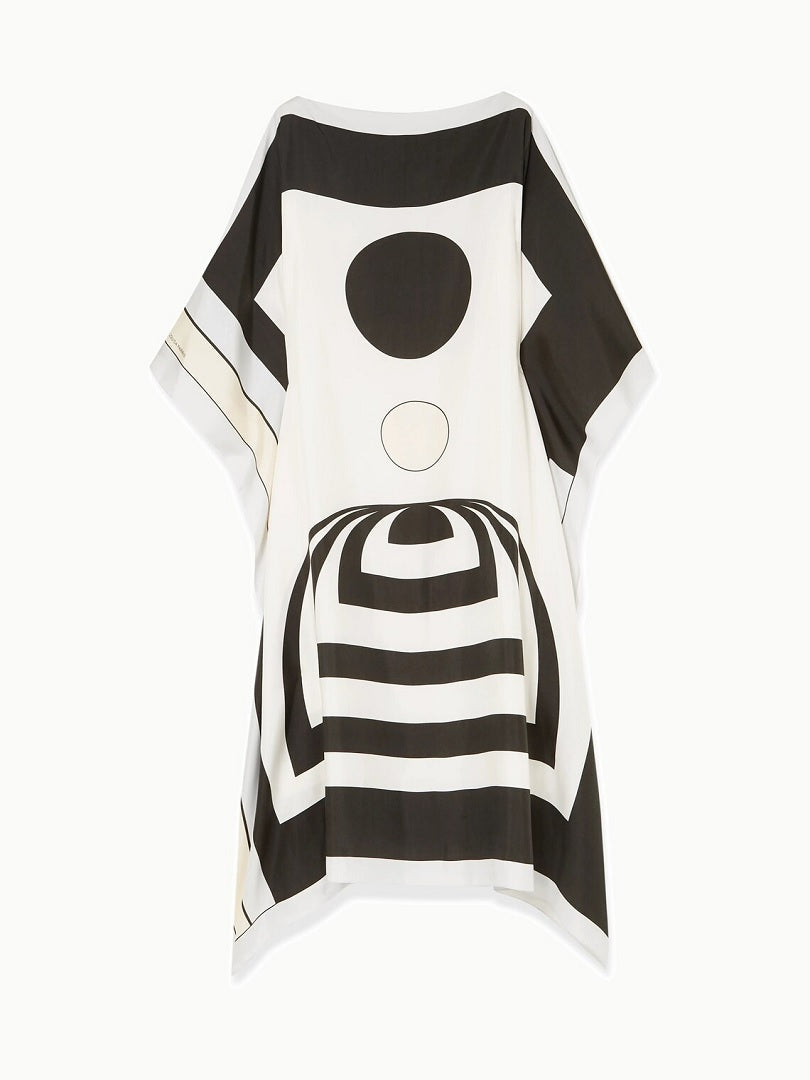 Black & White Printed Soft Silk Crepe Kaftan For Women Modest Wear J5608