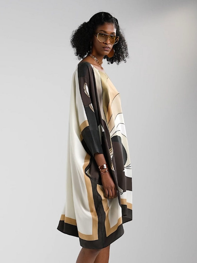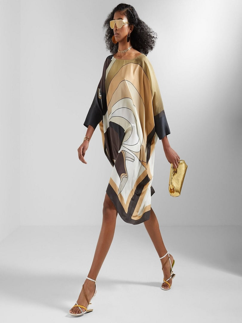 Brown Color Short Silk Crepe Kaftan Dress J5710BROWN