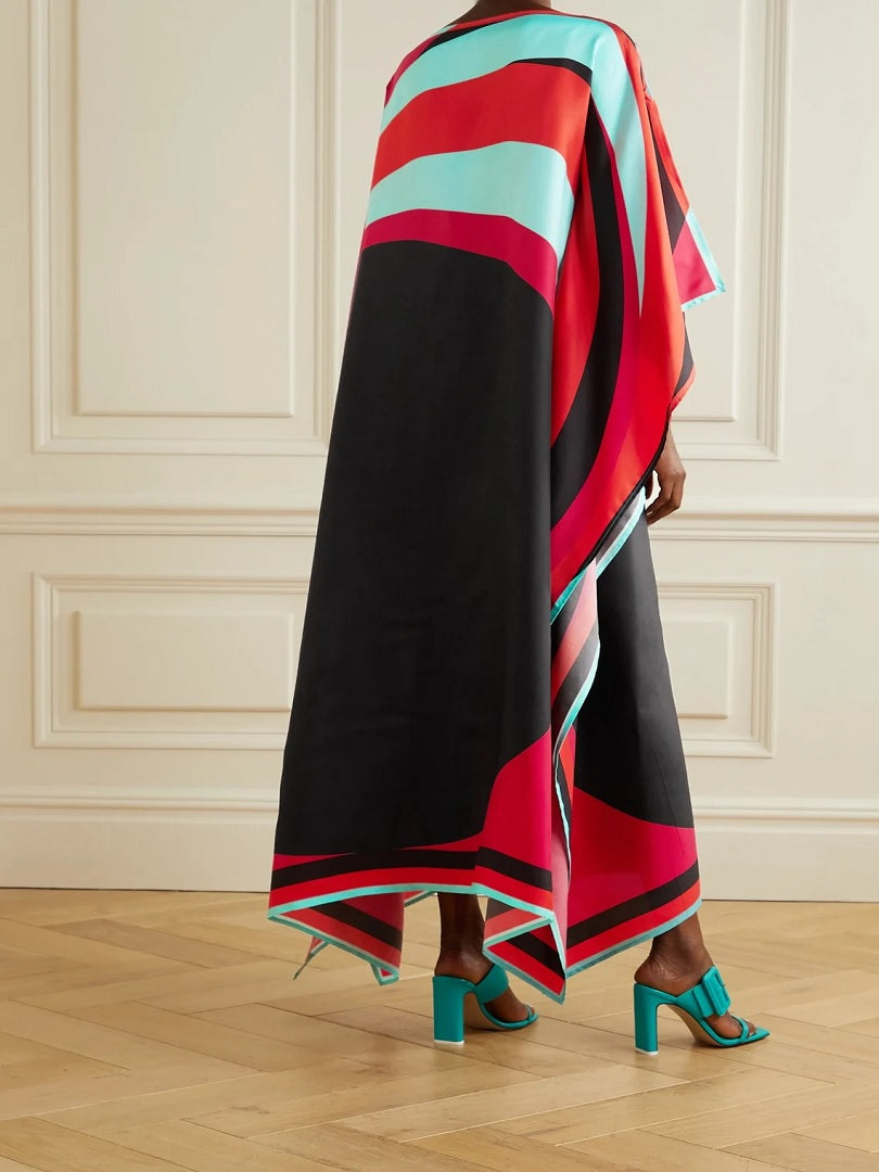 Daily Wear Calf Length Women Printed Satin Silk Kaftan J5588