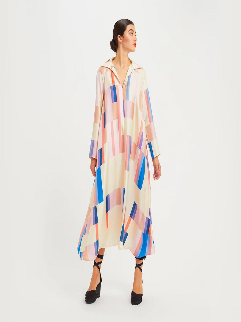Fashion Wear Block Printed Party Wear French Crepe Kaftan Top J5713