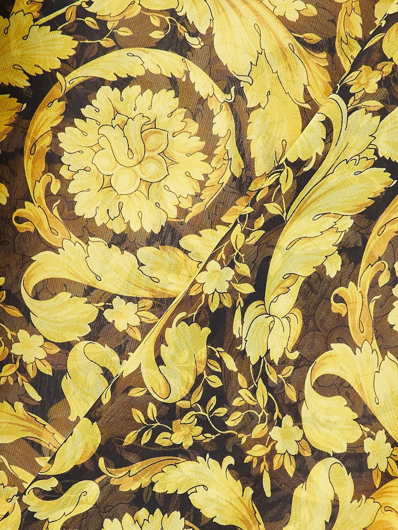 Floral Black Gold Women Georgette Printed Long Kaftan Dress J5764