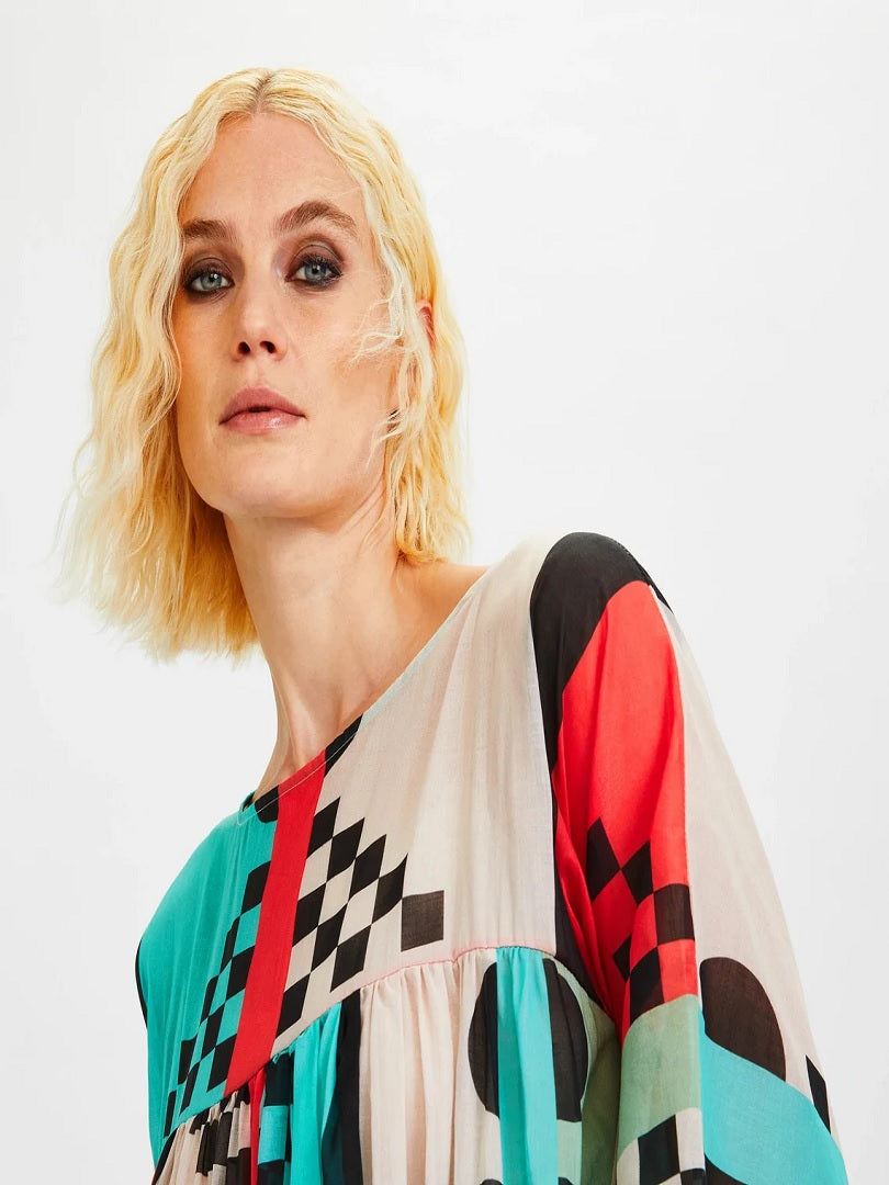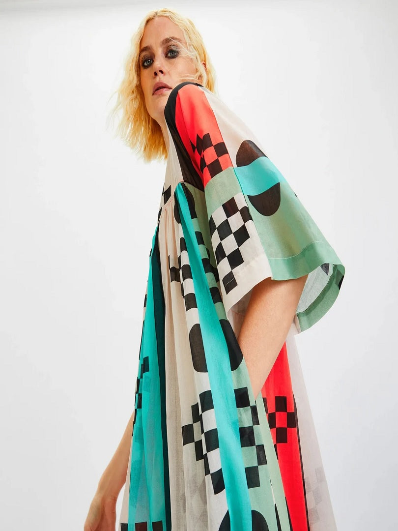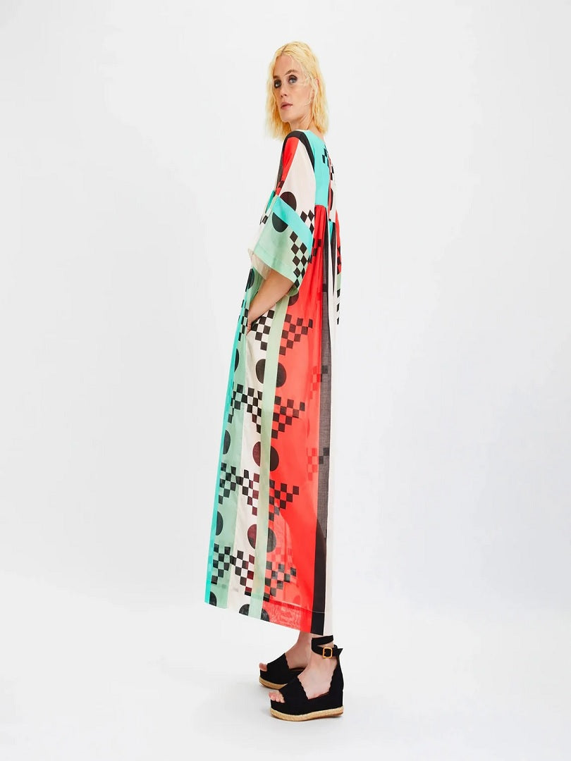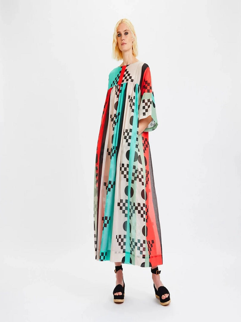 Geometric Multi Color Printed Casual Wear Poly Rayon Cotton Long Maxi Dress J5759