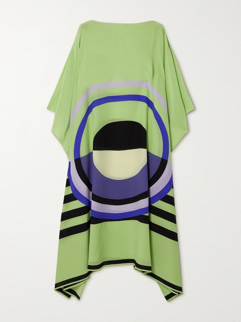 Light Green Color Softy Silk Crepe Circle Pattern Kaftan J5694