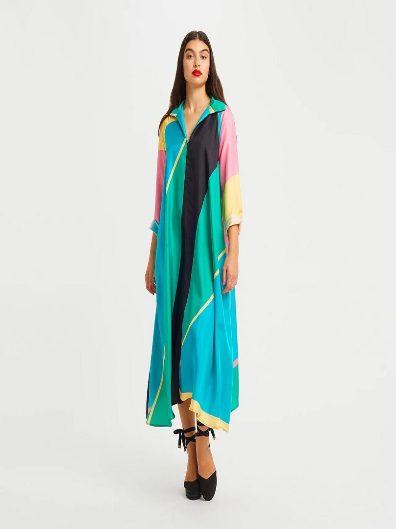 Long Collar Style French Crepe Kaftan Kurti J5714