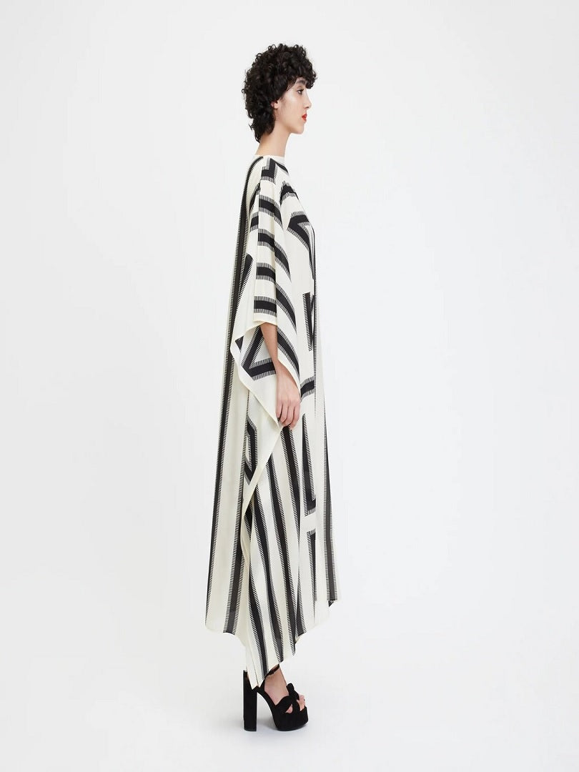 Modern Wear French Moss White & Black Kaftan Dress J5689