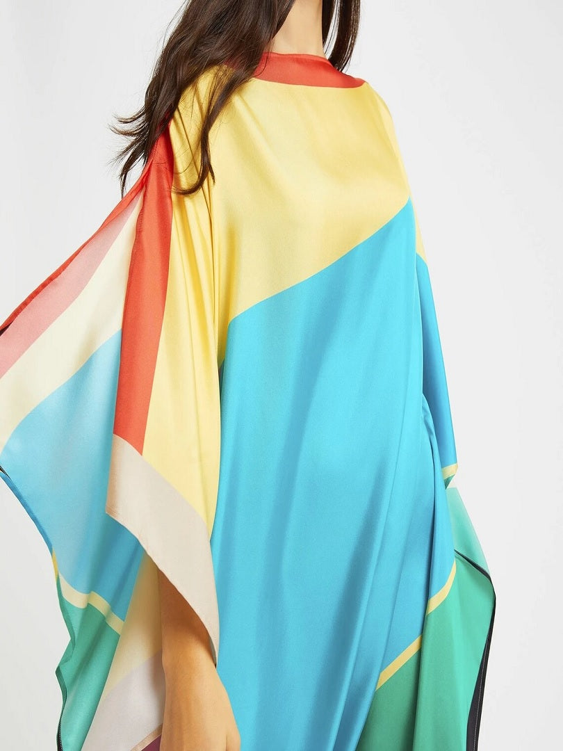 Rainbow Sky Silk Crepe Kaftan Dress Caftan Top J5616