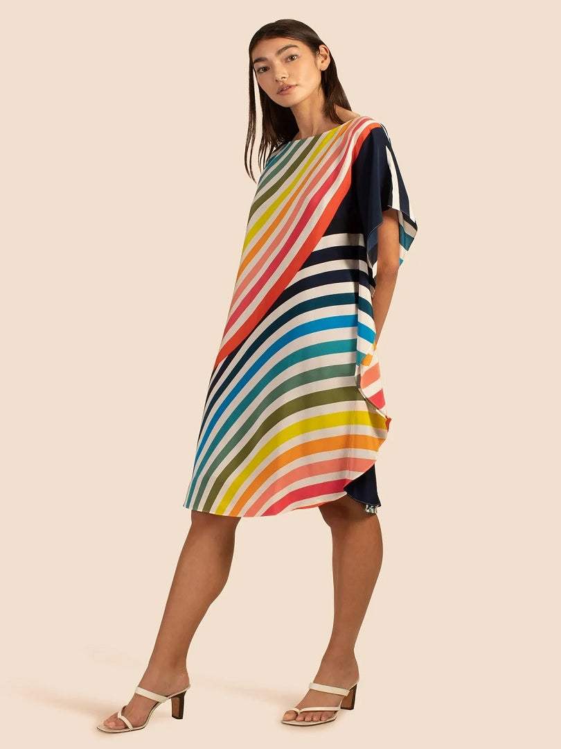 Rainbow Stripes Short Silk Crepe Kaftan J5675
