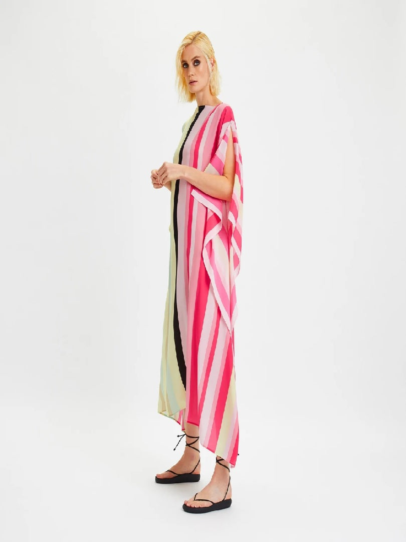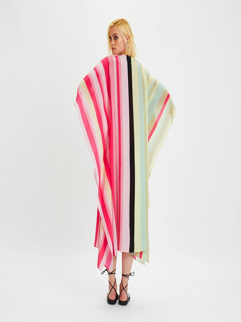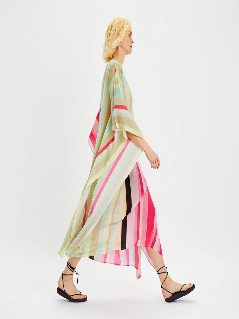 Silk Crepe Stripe Printed Kaftan Top J5688