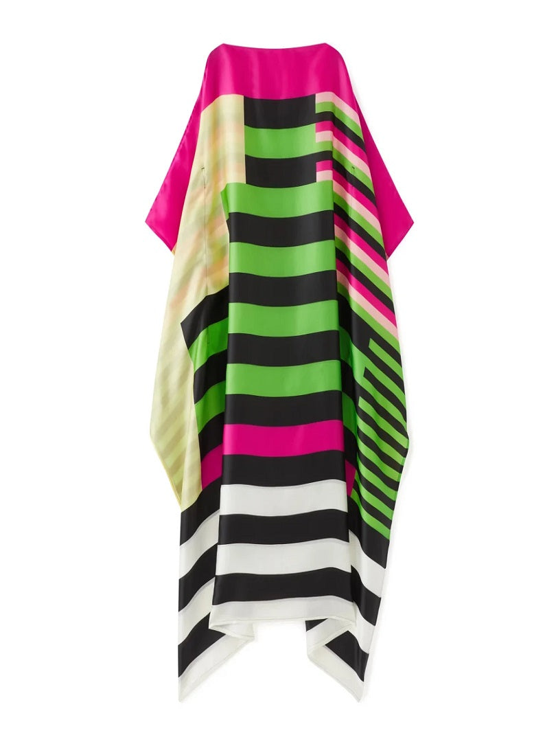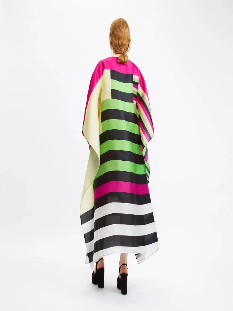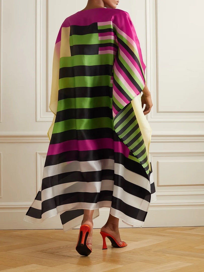 Striped Printed Organza Silk Women Party Wear Kaftan J5784