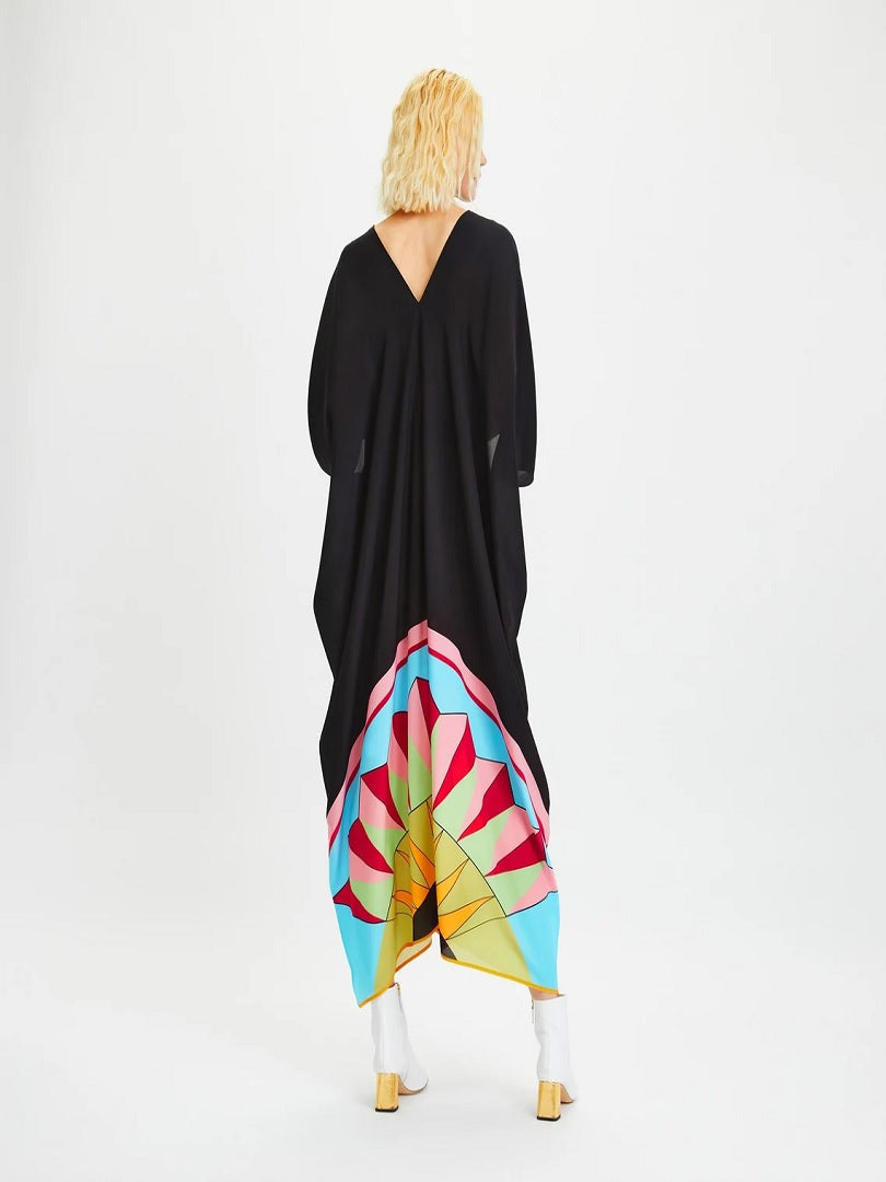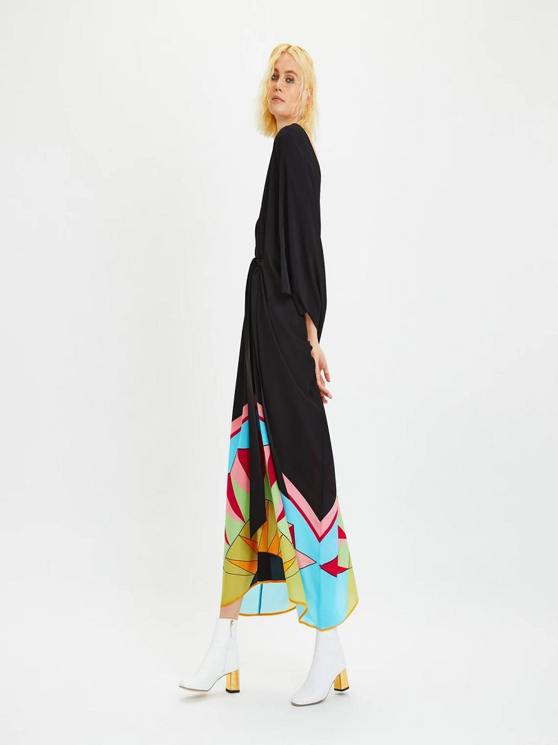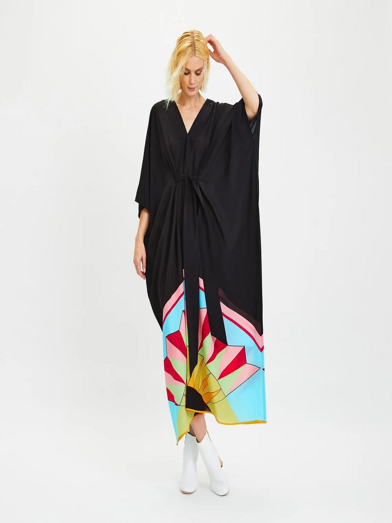 V-Neck Belt Style Black Chelsea Georgette Kaftan J5652