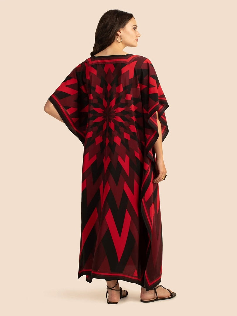 V Neck Printed Lounge Wear Soft Silk Crepe Kaftan J5765