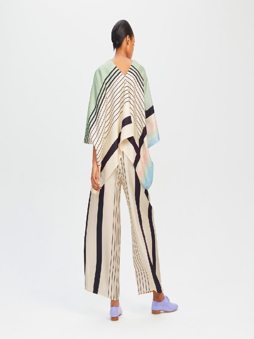 V-Neck Style Stripped Printed Satin Silk Co-ord Sets Kaftan + Pant For Women J5637