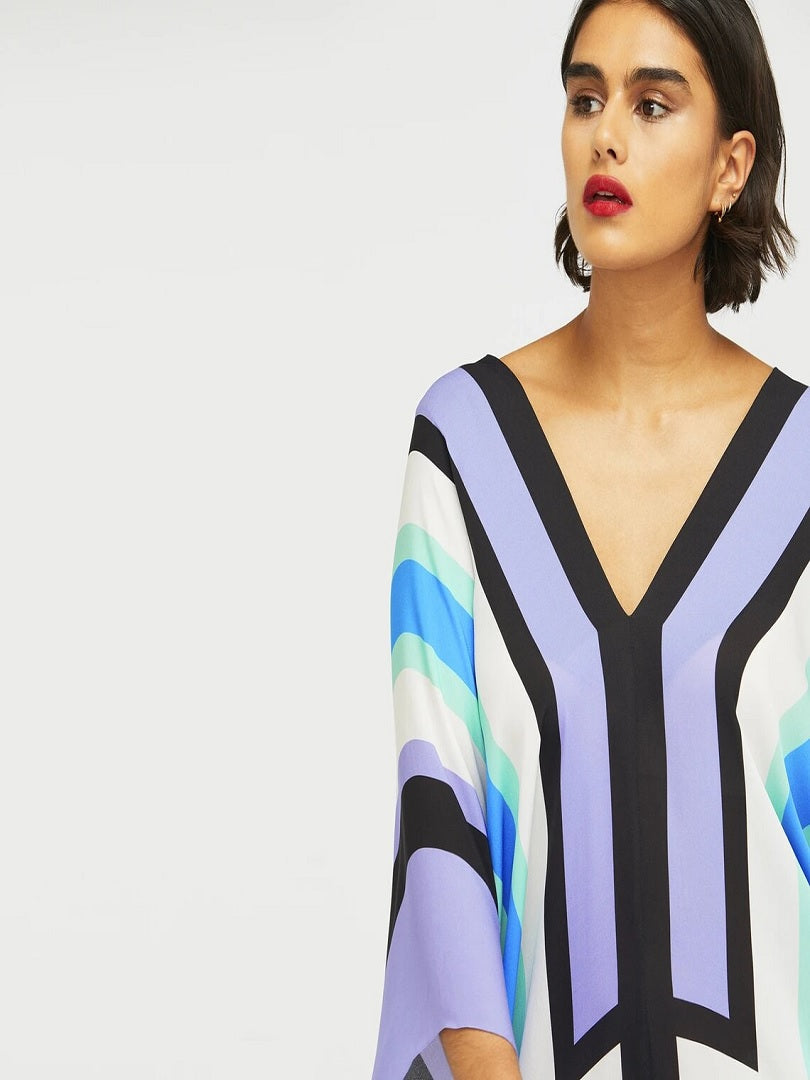 Women’s Short Printed Soft Silk Crepe Kaftan Top Daily Wear J5618
