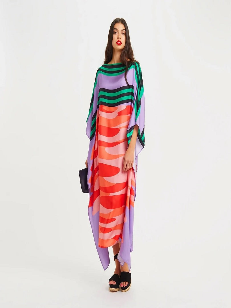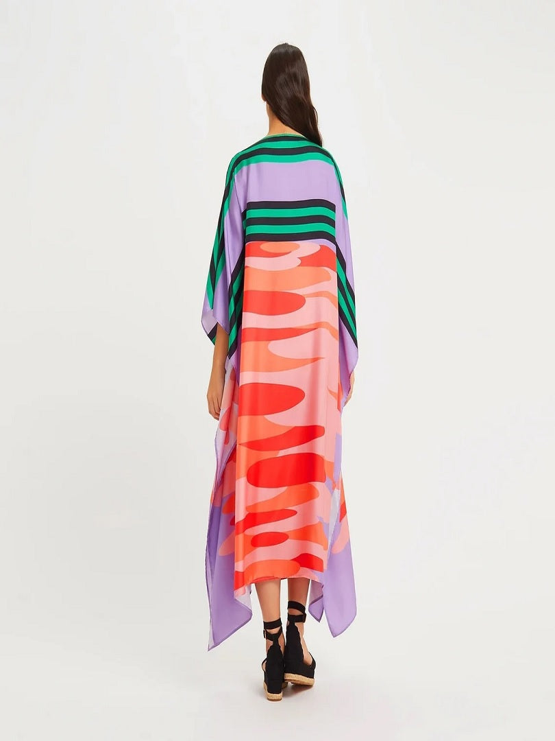 Women’s Striped Printed Softy Silk Crepe Beach Wear Kaftan J5605