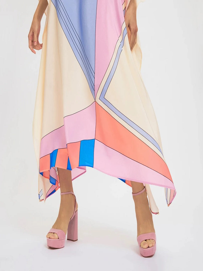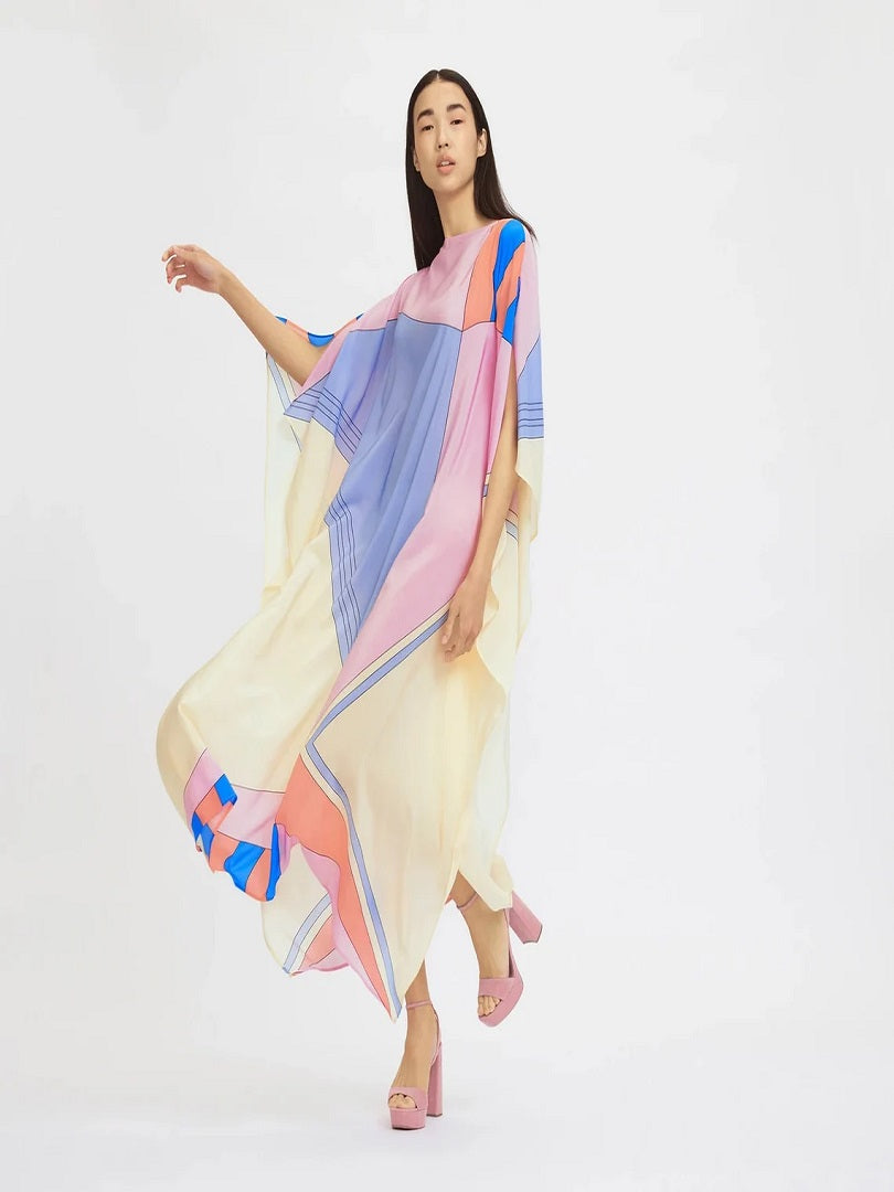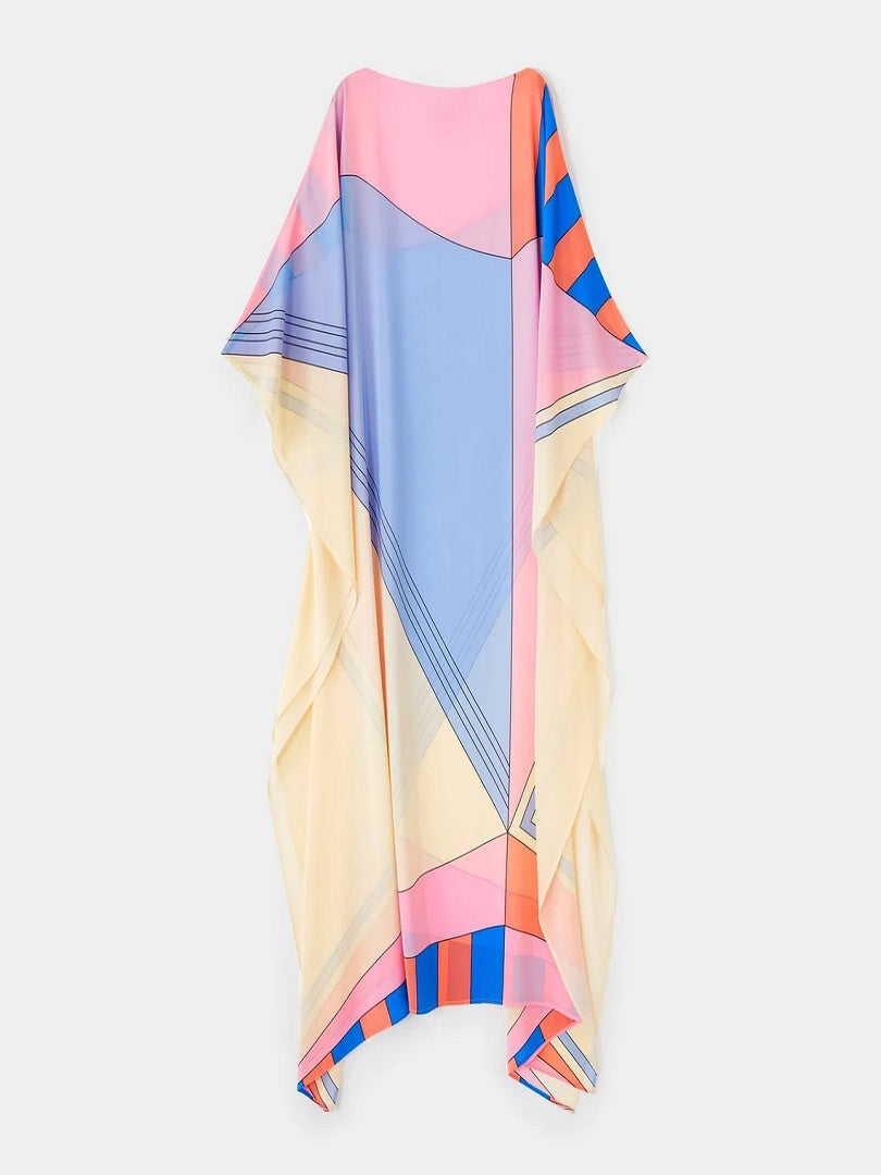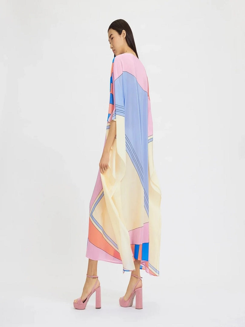 Women's Casual Wear Soft Silk Crepe Kaftan, Beach Party Wear Dress J5602