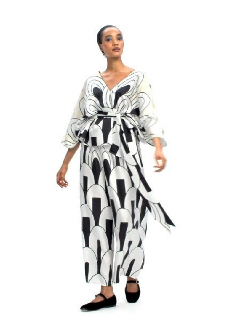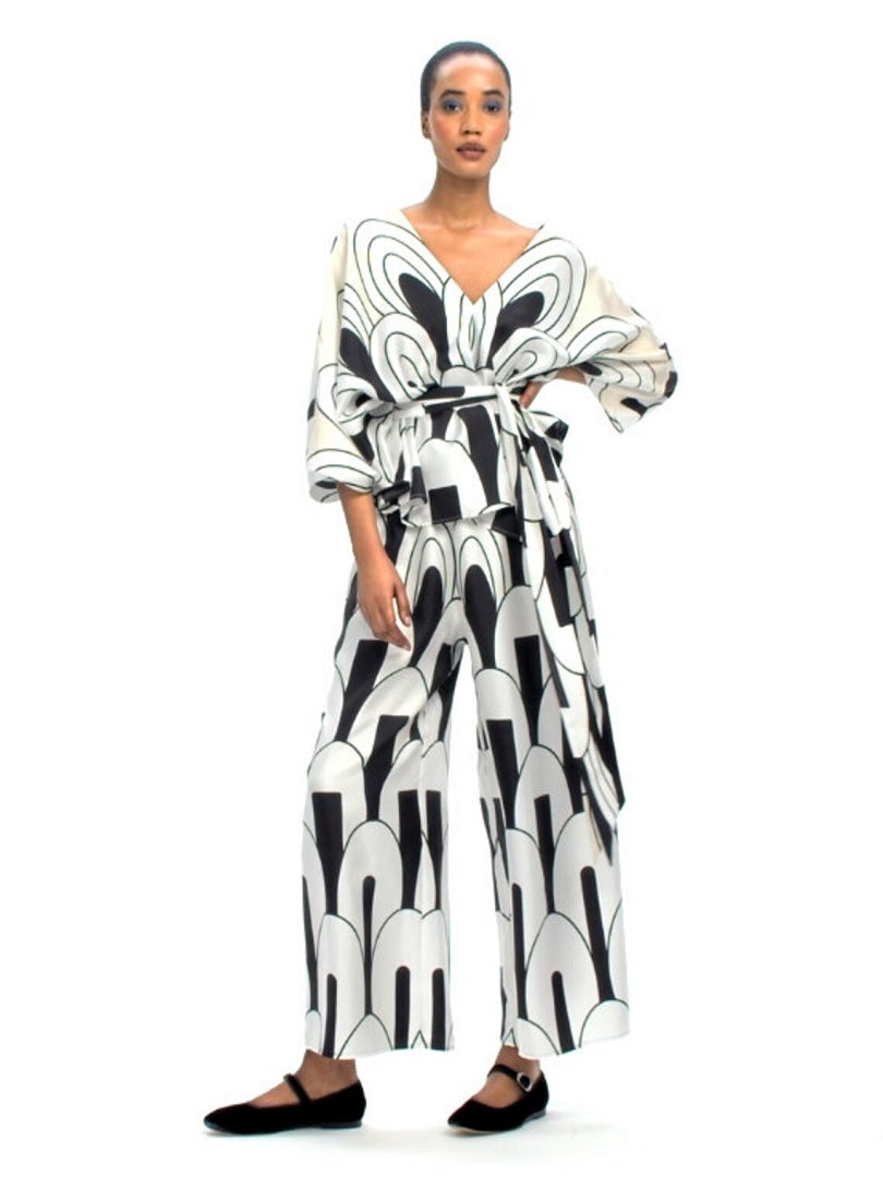Women's V-Neck Belt Style Printed Co ord Set Top+Plazzo J5684