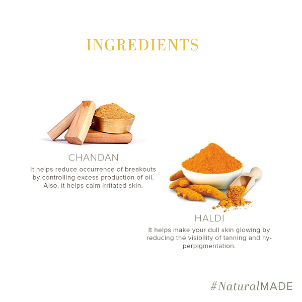 Khadi Natural Chandan Haldi Soap has anti-bacterial and anti-fungal properties that help keep skin infection at the bay. Rich in Vitamin E, this soap moisturizes and revitalizes the skin, making it soft and supple. Also, this soap helps in restoring the natural skin glow. This soap helps heal acne while deeply cleansing the pores. It is suitable for all skin types.