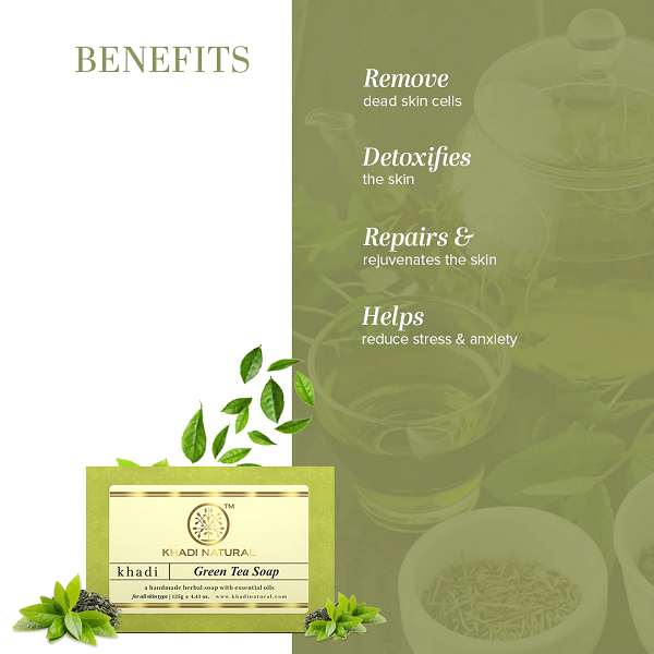 Khadi Natural Green Tea Handmade Herbal Soap, 125 g